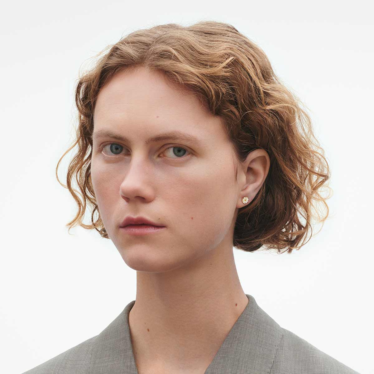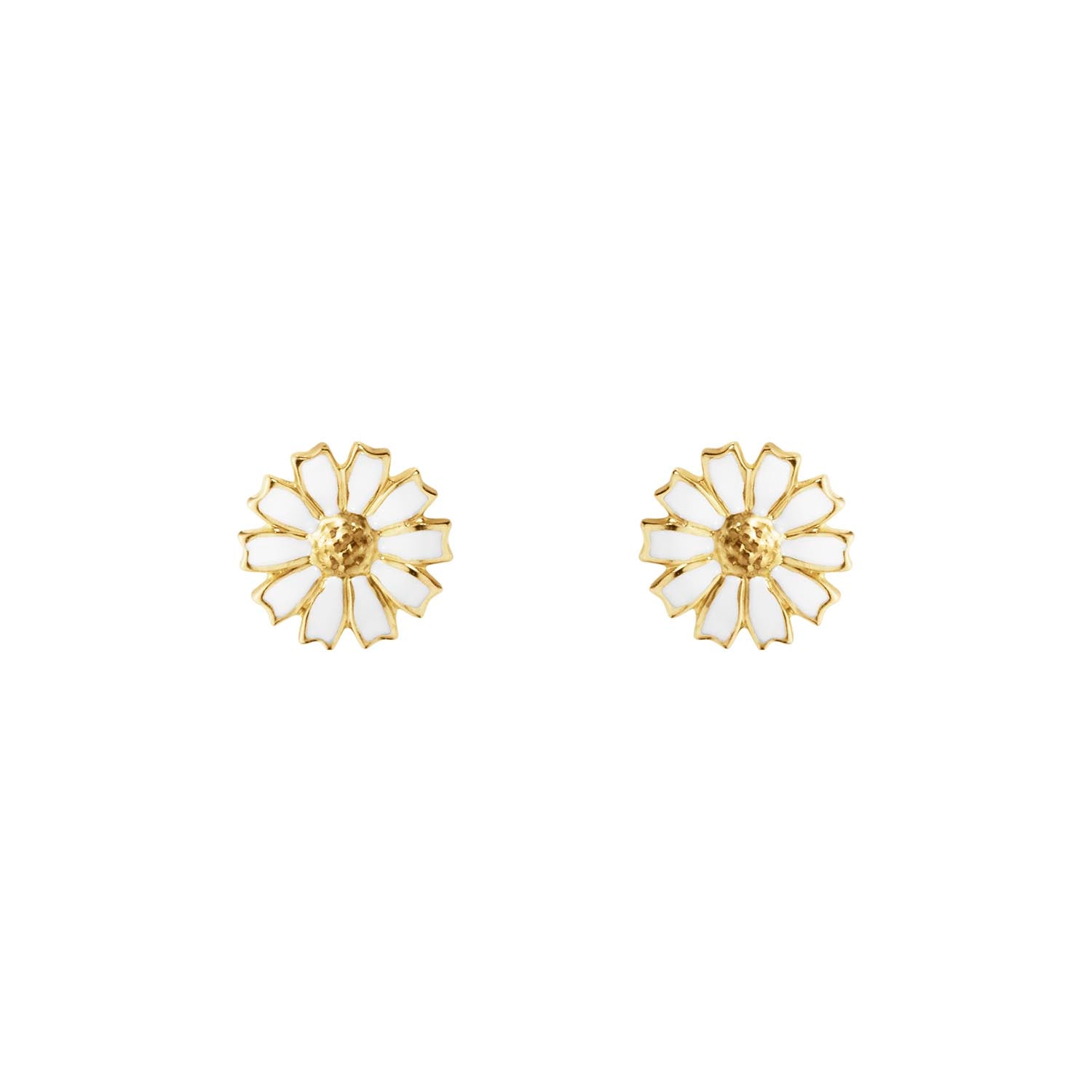 Eyrnalokkarnir eru frá skartgripalínu Georg Jensen sem kallast Daisy. Lokkarnir eru úr  silfri sem er húðað með 18 karata gullhúð og hvítri emileringu.  Blómin eru 7 mm í þvermál. ... Sjá nánar