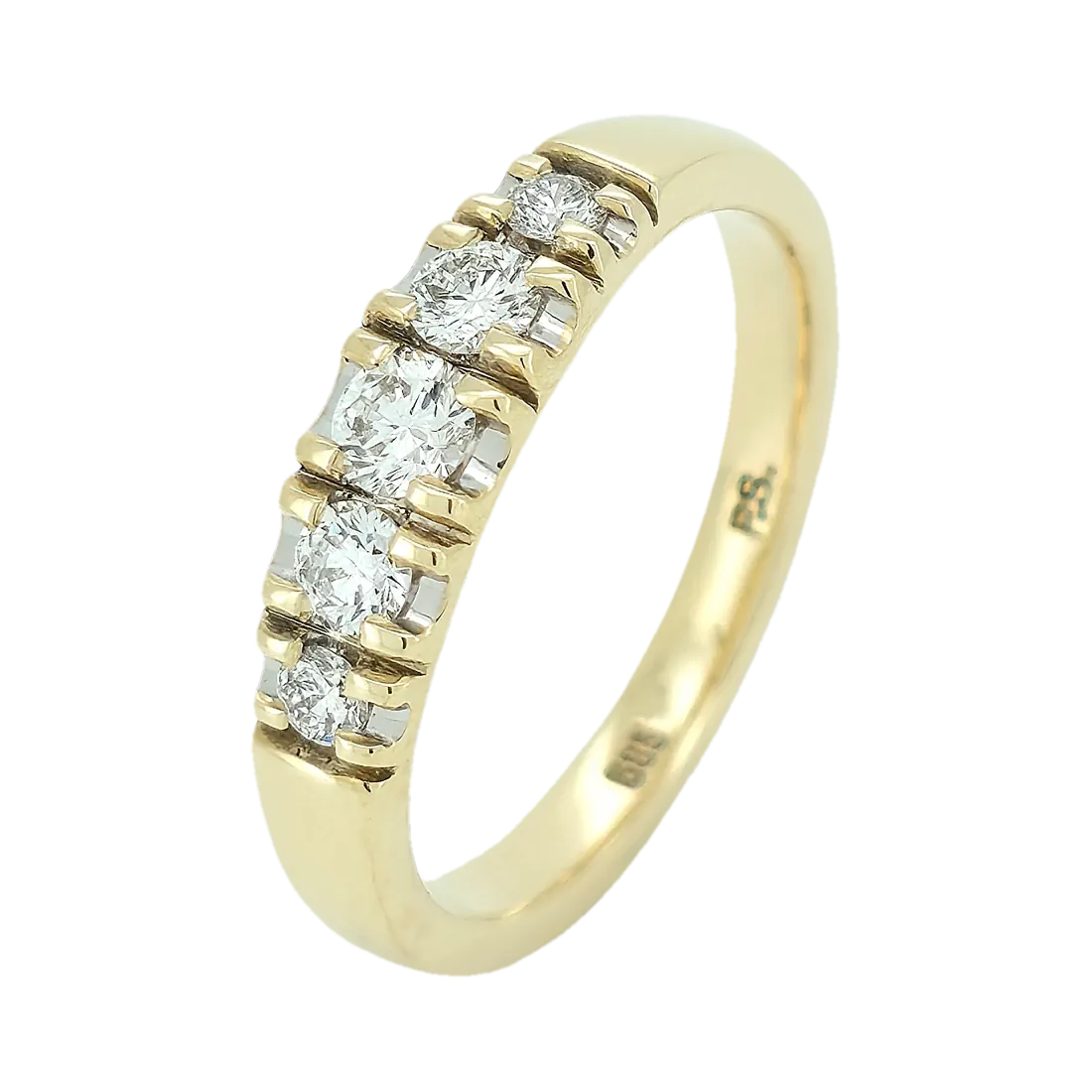 Efni hrings: 14kt gull Steinar: 5 demantar - 0,45ct - Top Wesselton VS - demantar minnka frá miðju: 0.05 - 0.15ct