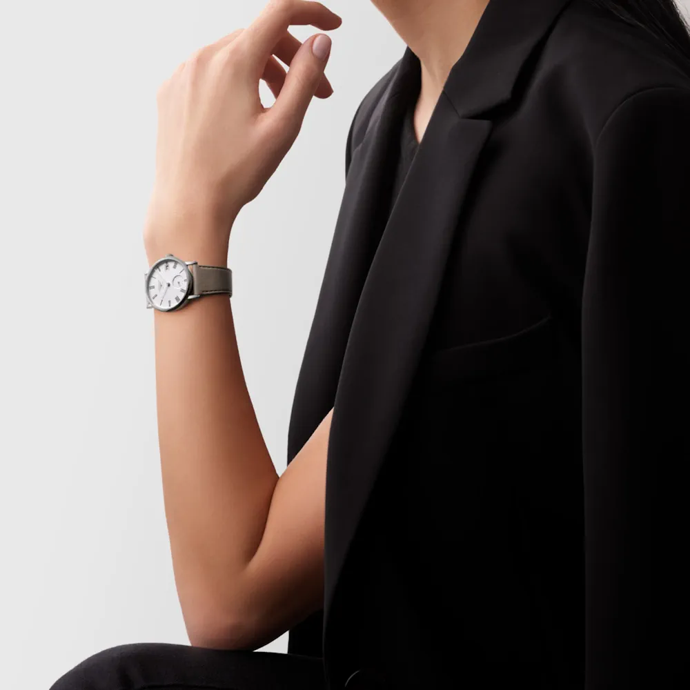 Úrkassi: 34,5mm – stál Úrverk: Sjálftrekkt – L891 með 72 stunda power reserve Vatnsvörn: 30M Skífa: Hvít – vísar Gler: Safírgler Ól: Grænmetisefni – vegan Ábyrgð: Fimm ára