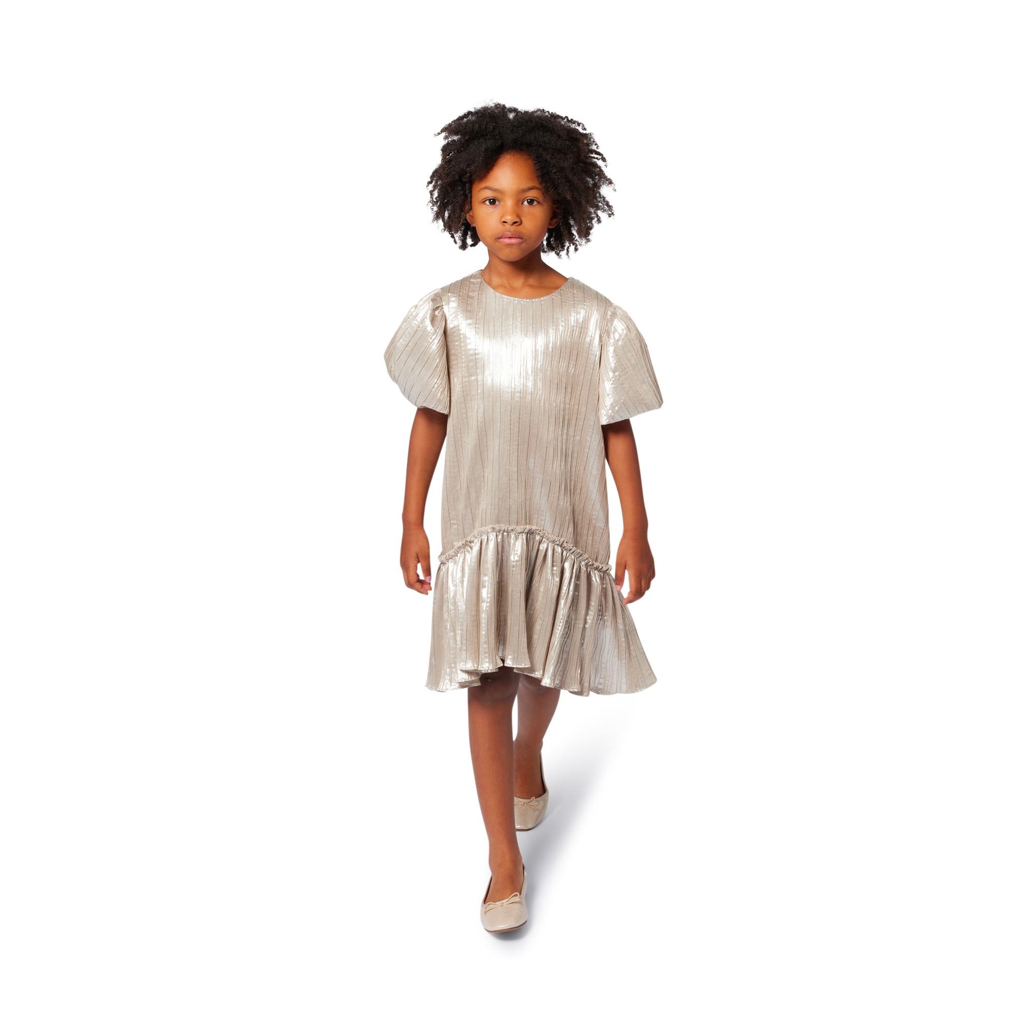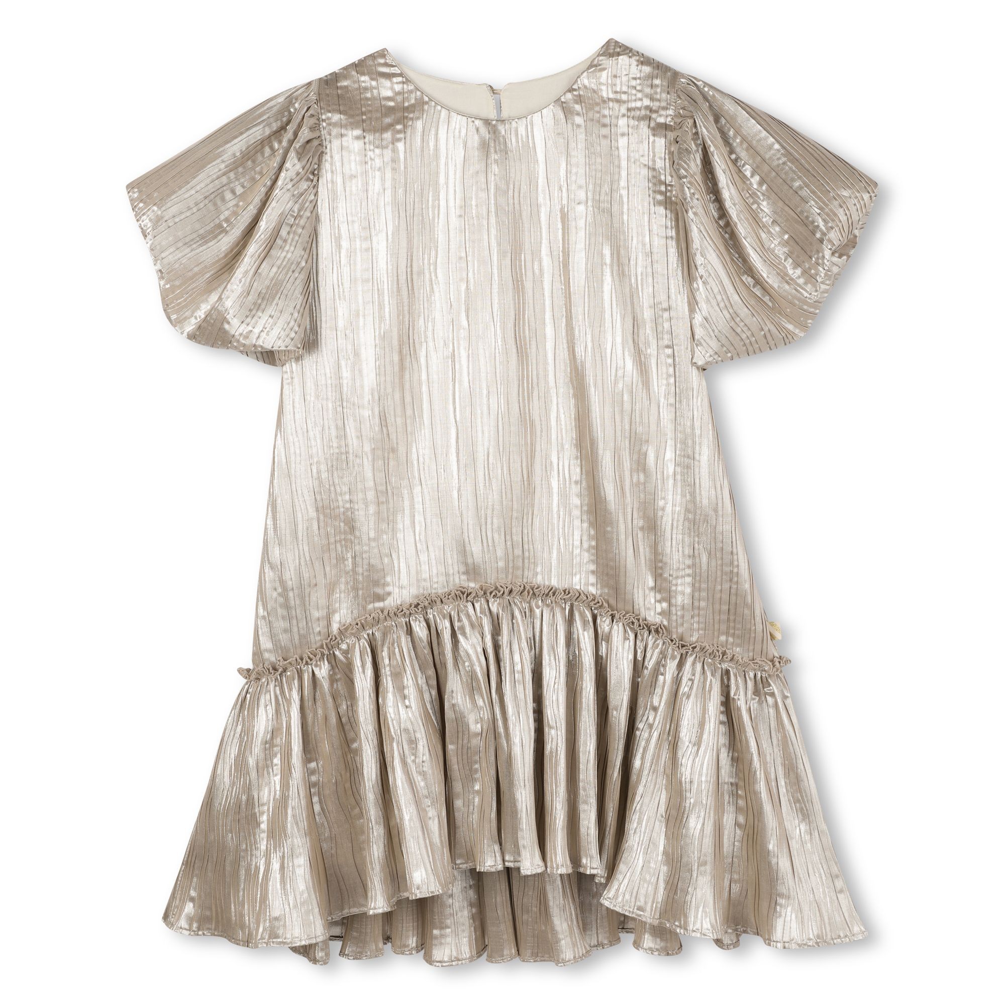 Gylltur kjóll með víðu pilsi frá Billieblush. Kjóllinn hneppist að aftan.