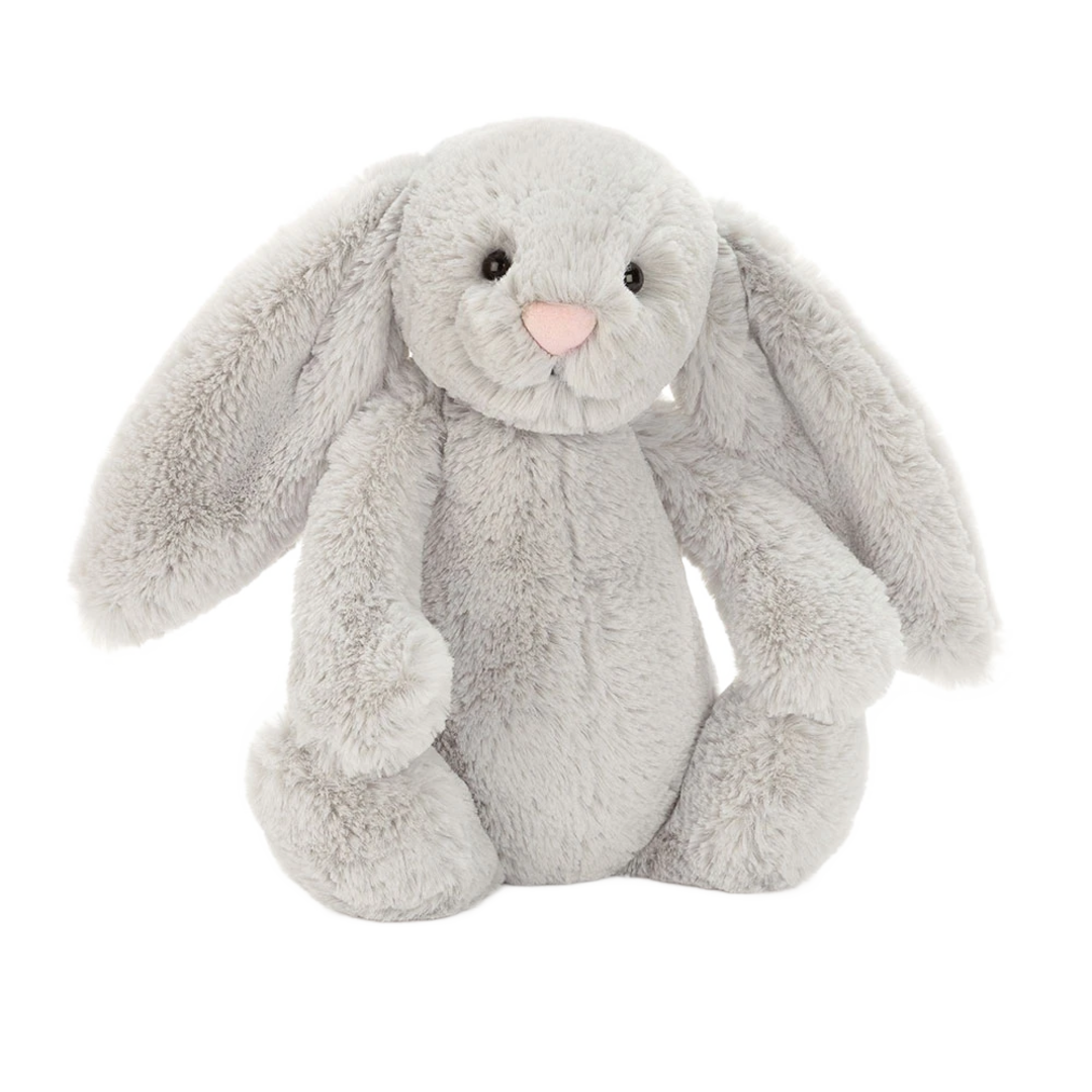 Dimensions: 18cm x 9cm x 8cmSitting Height: 15cmMain Materials: PolyesterInner Fillin Polyester Fibres, PE BeansHard Eye | Bashful Bunny small Silver