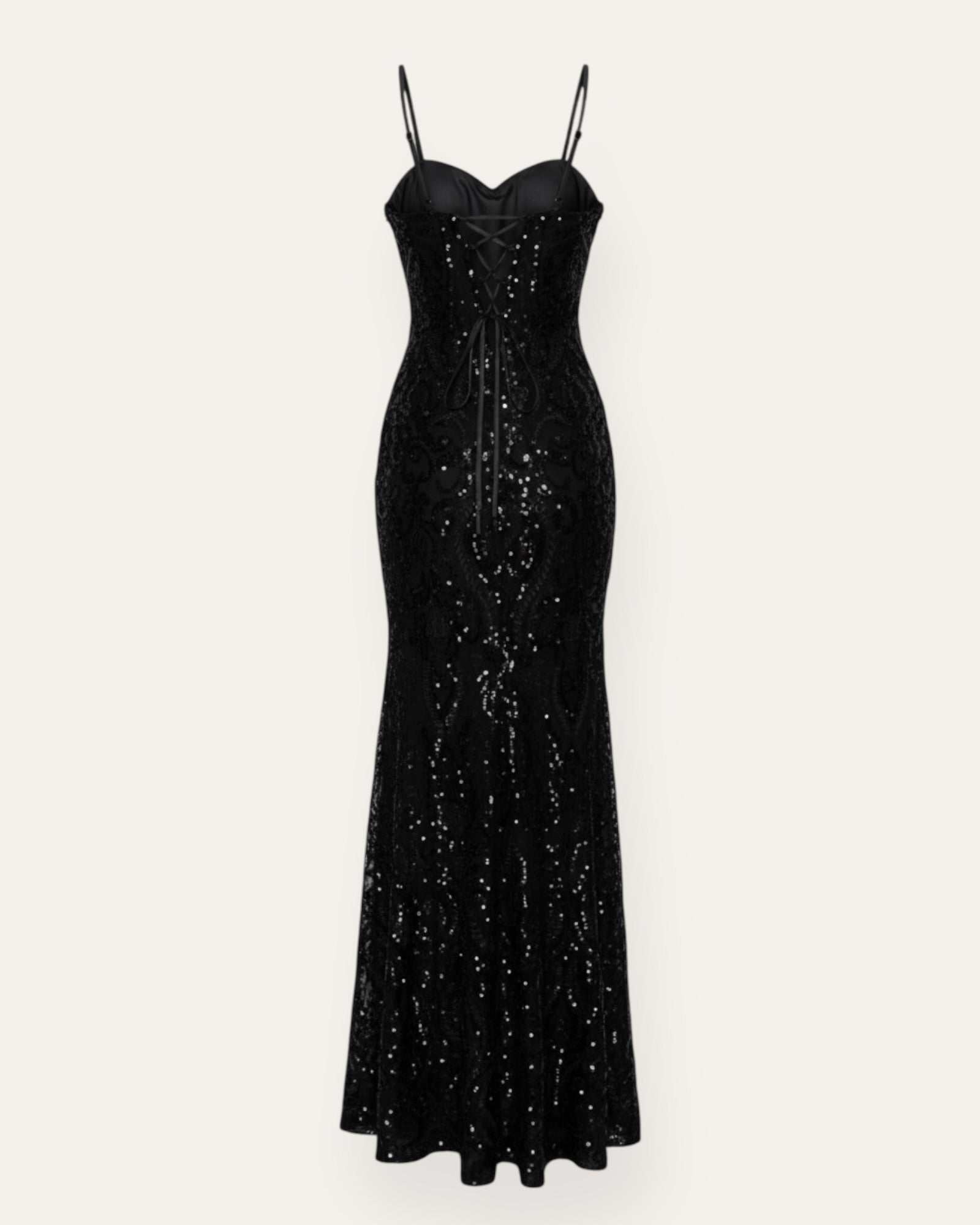 Pallíettu Corset Maxi Kjóll Glæsilegur og töfrandi maxi kjóll þakinn pallíettum sem glitra fallega við hvert skref. Kjóllinn er með corset innblásnu sniði sem mótar líkamann fallega og ... Sjá nánar