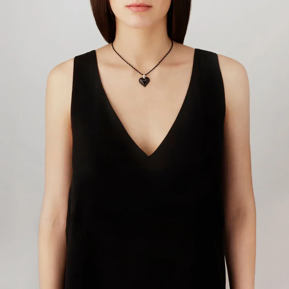 Efni hálsmens: Silfur og franskur Lalique kristall Stærð mens: 2.3cm Hálskeðja: Textílefni - 85cm, hægt að stytta