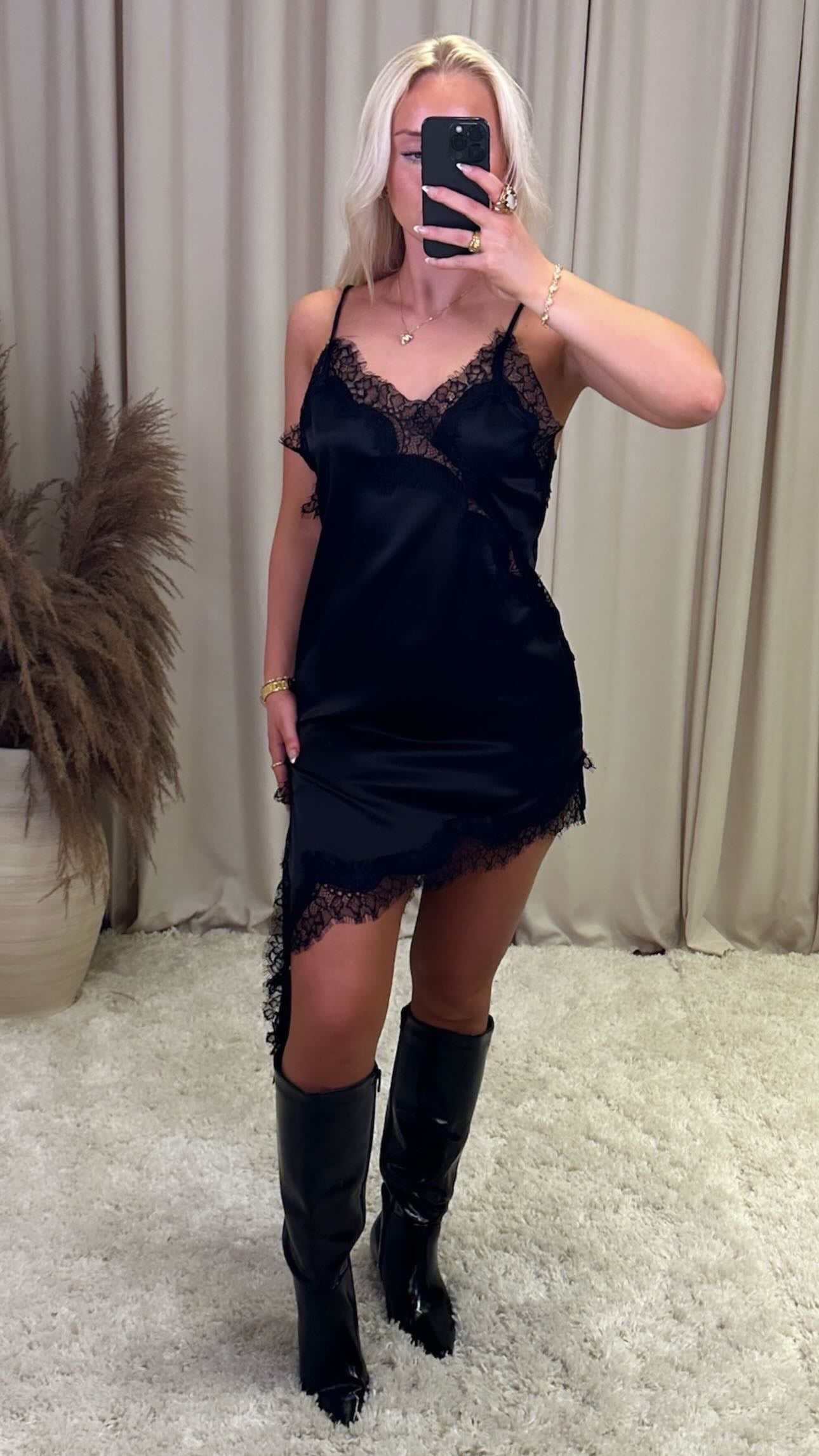 Æðislega fallegur kjóll úr mjög mjúku satín efni, það er engin teygja í efninu modelið er 160cm og er í stærð S