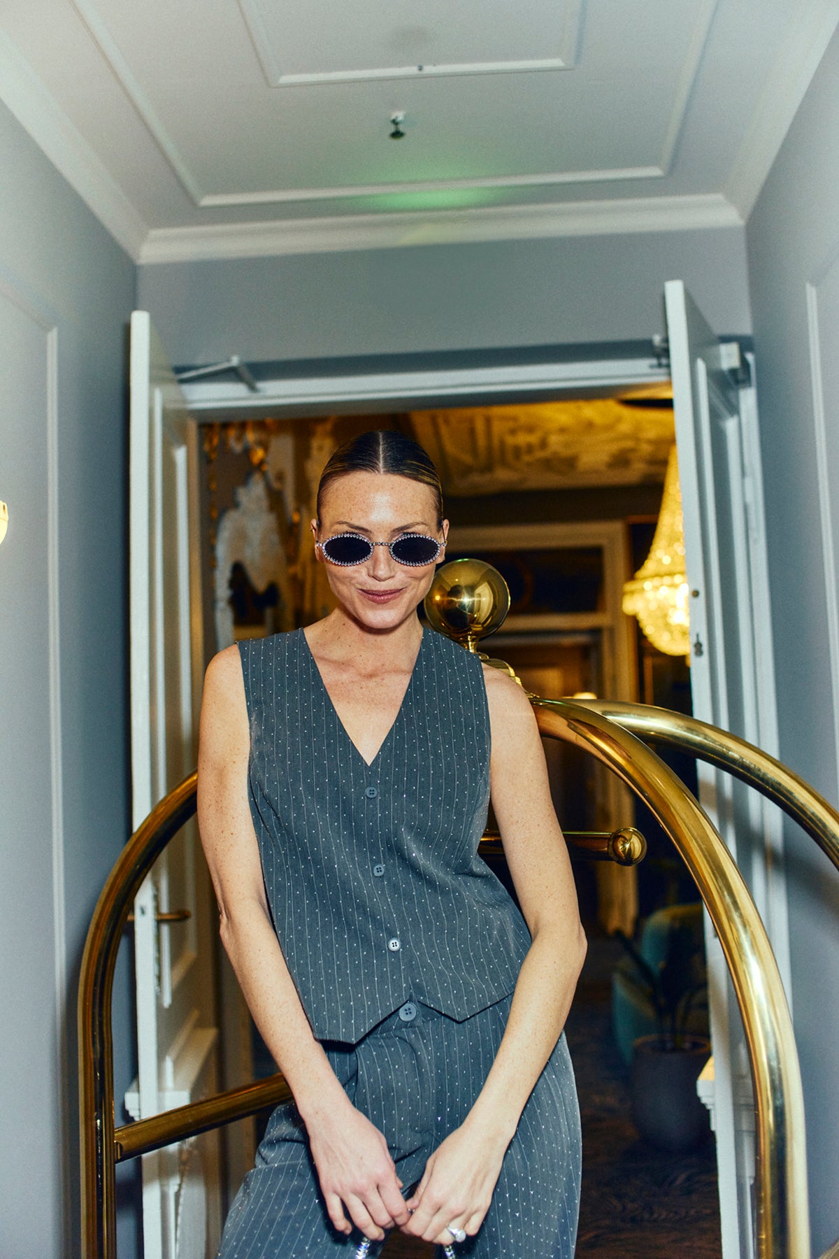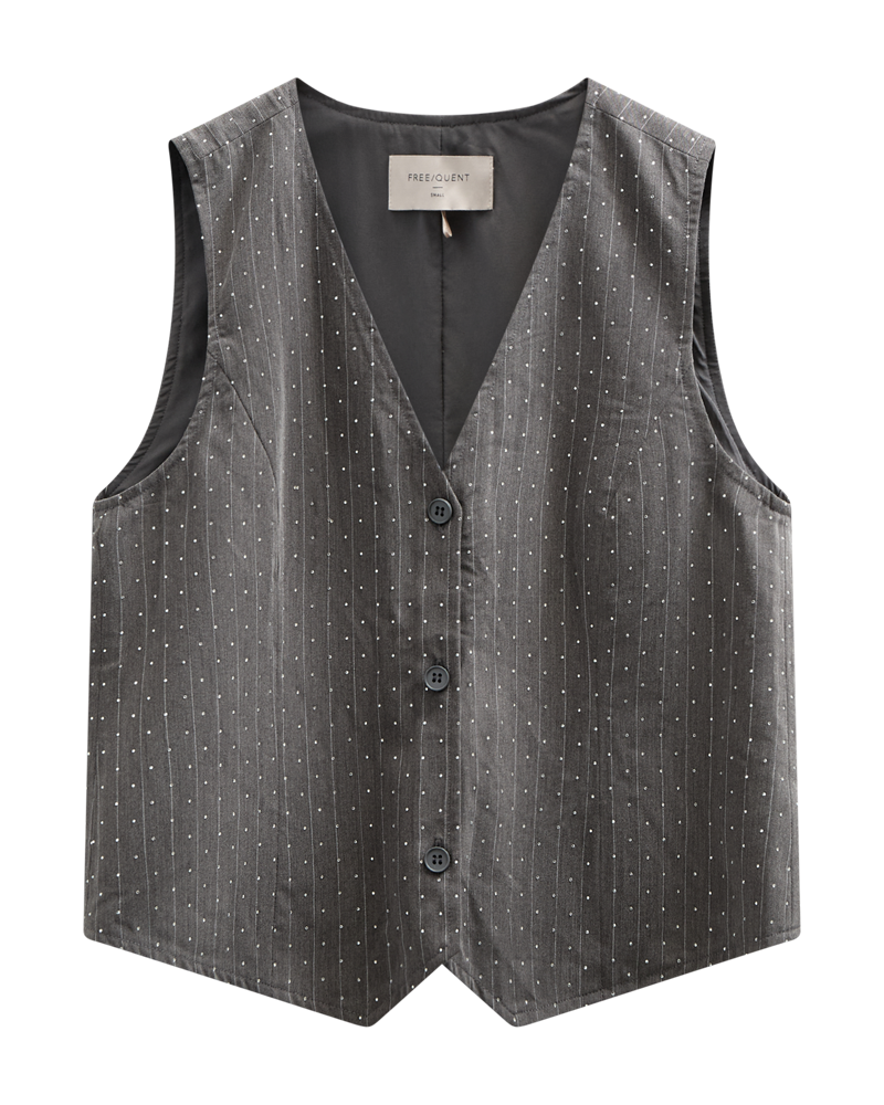 Geggjað vesti með steinum á frá Free/Quent. 60%polyester 35%bómull 5%teygja