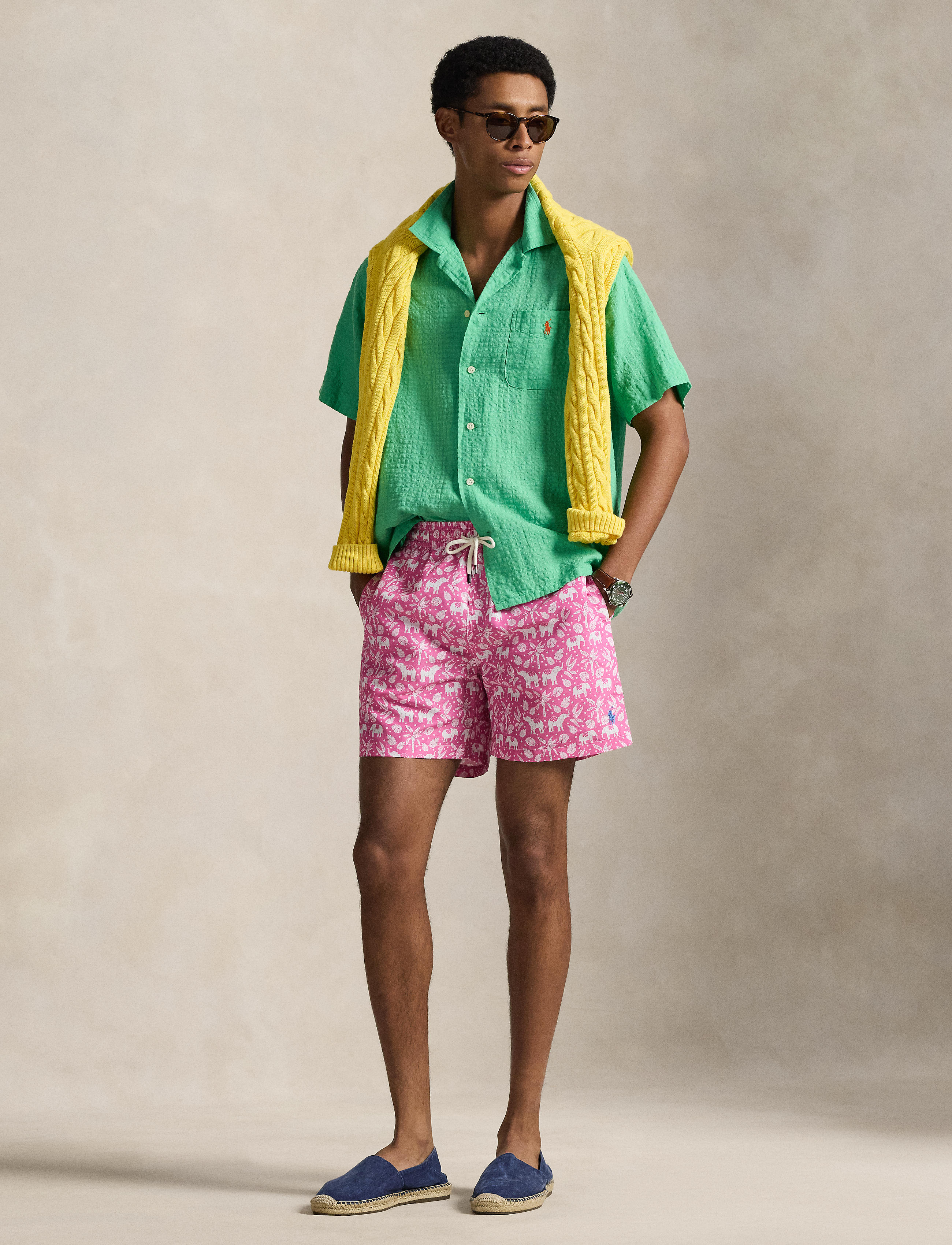 These mesh-lined swim trunks are printed with a playful motif of elephants and tropical fauna. At the left hem, they are embroidered with Ralph Lauren’s signature Pony. Classic Fit: sits at ... Sjá nánar