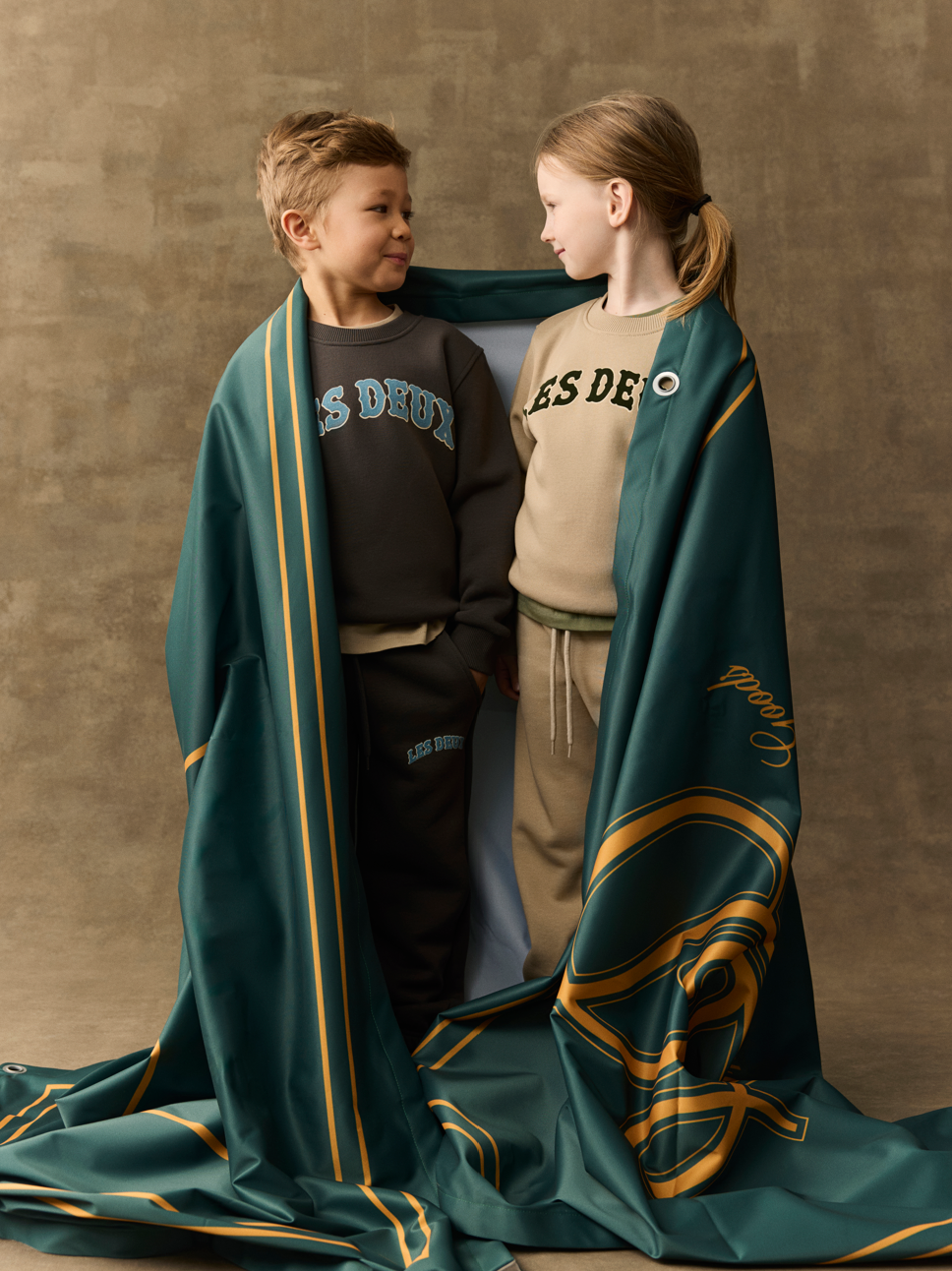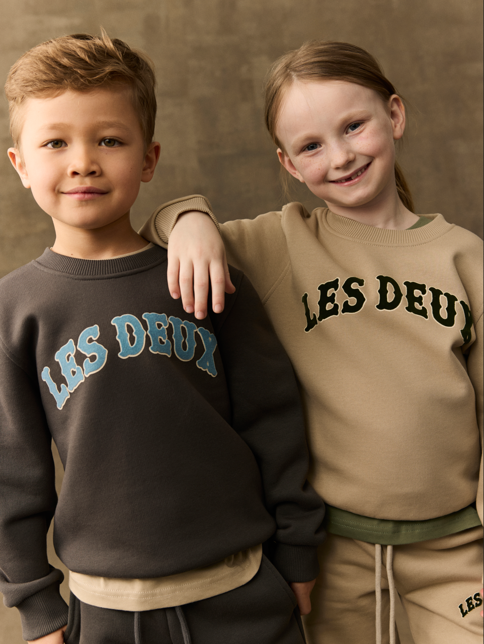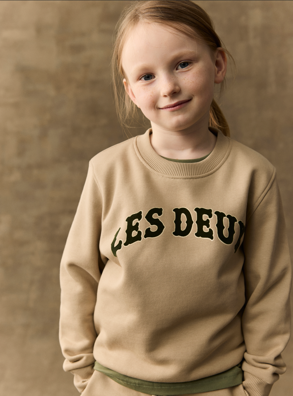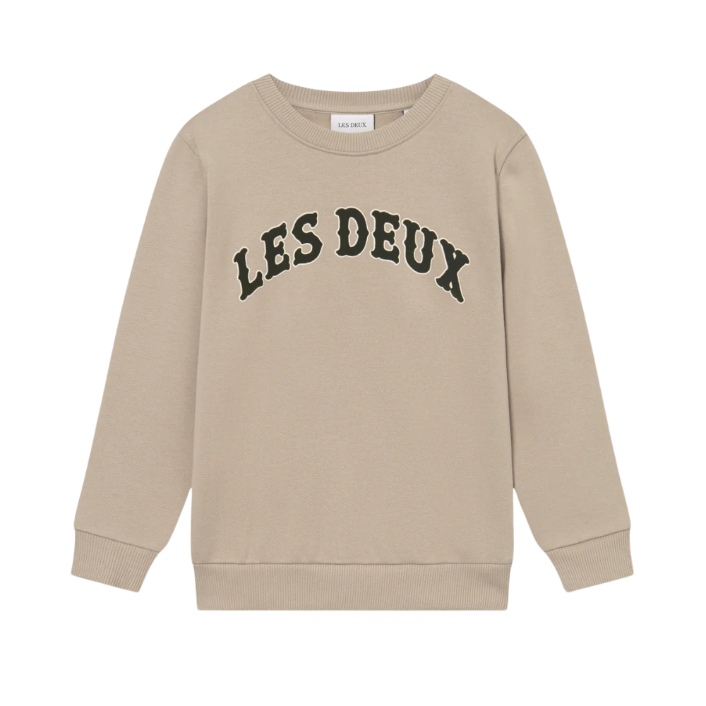 Ljós brún peysa frá Les Deux með stóru logo að framan. 100% bómull.