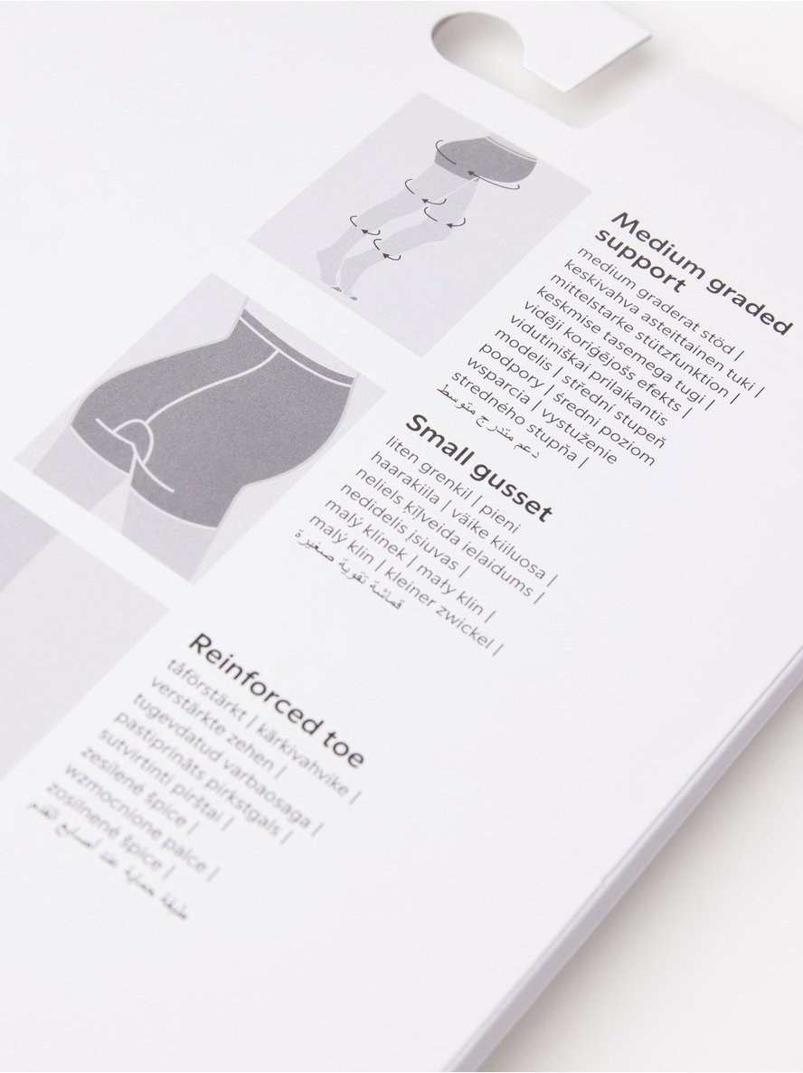 Comfortable tights with medium compression and special knit that gives stretch and support for the growing tummy. Medium support Extra space for the growing belly Semi shine finish ... Sjá nánar