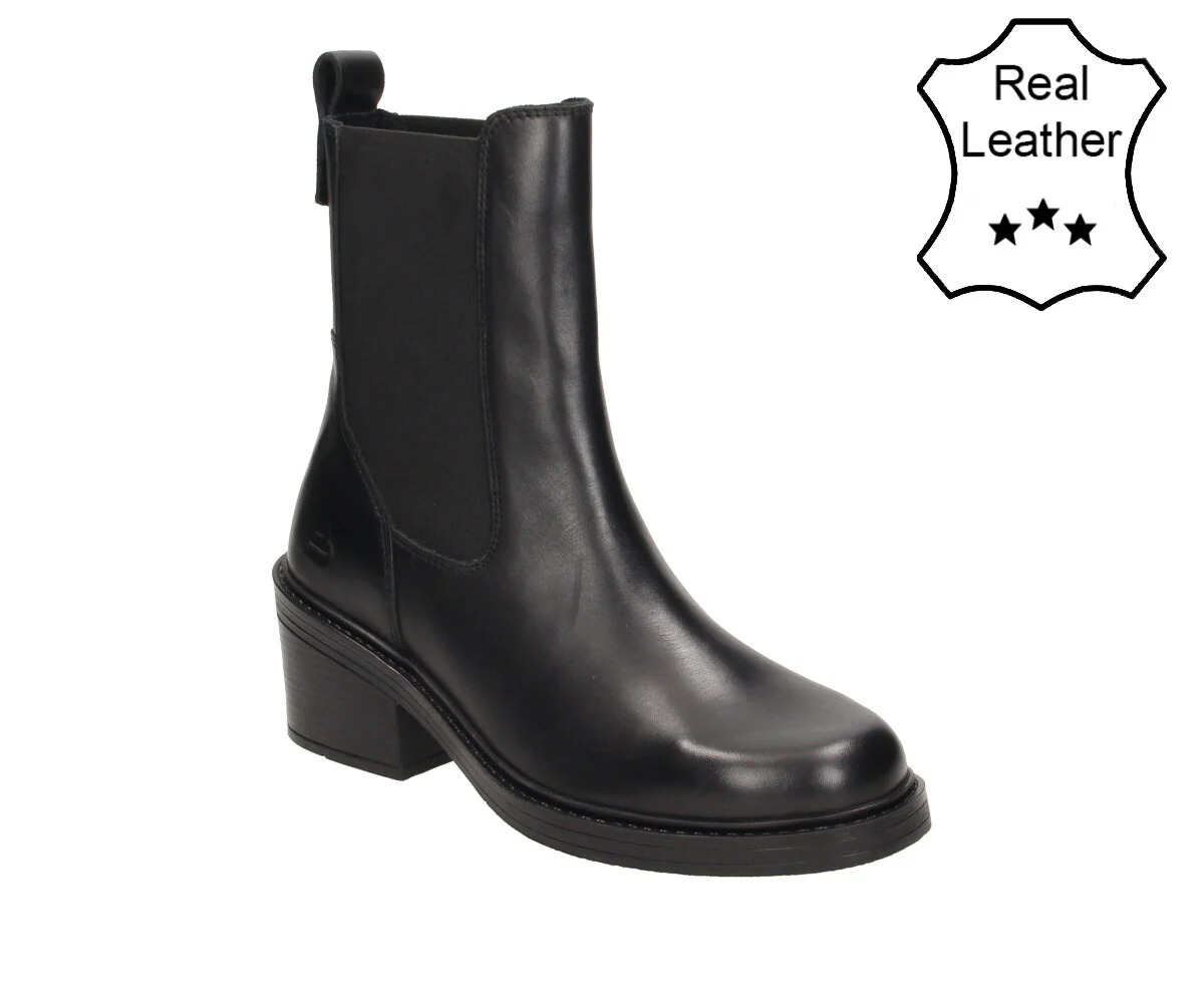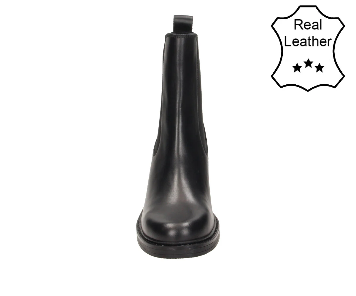 – Svart – Ekta leður að utan – Fóður að innan – Leðurinnlegg – Gúmmísóli – Venjuleg númer – Hæll 5 cm Æðisleg stílhrein chelsea stígvél sem að ná vel upp fyrir ökkla. Teygjur í báðum ... Sjá nánar