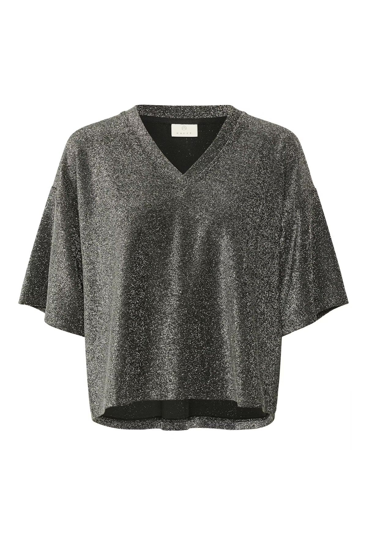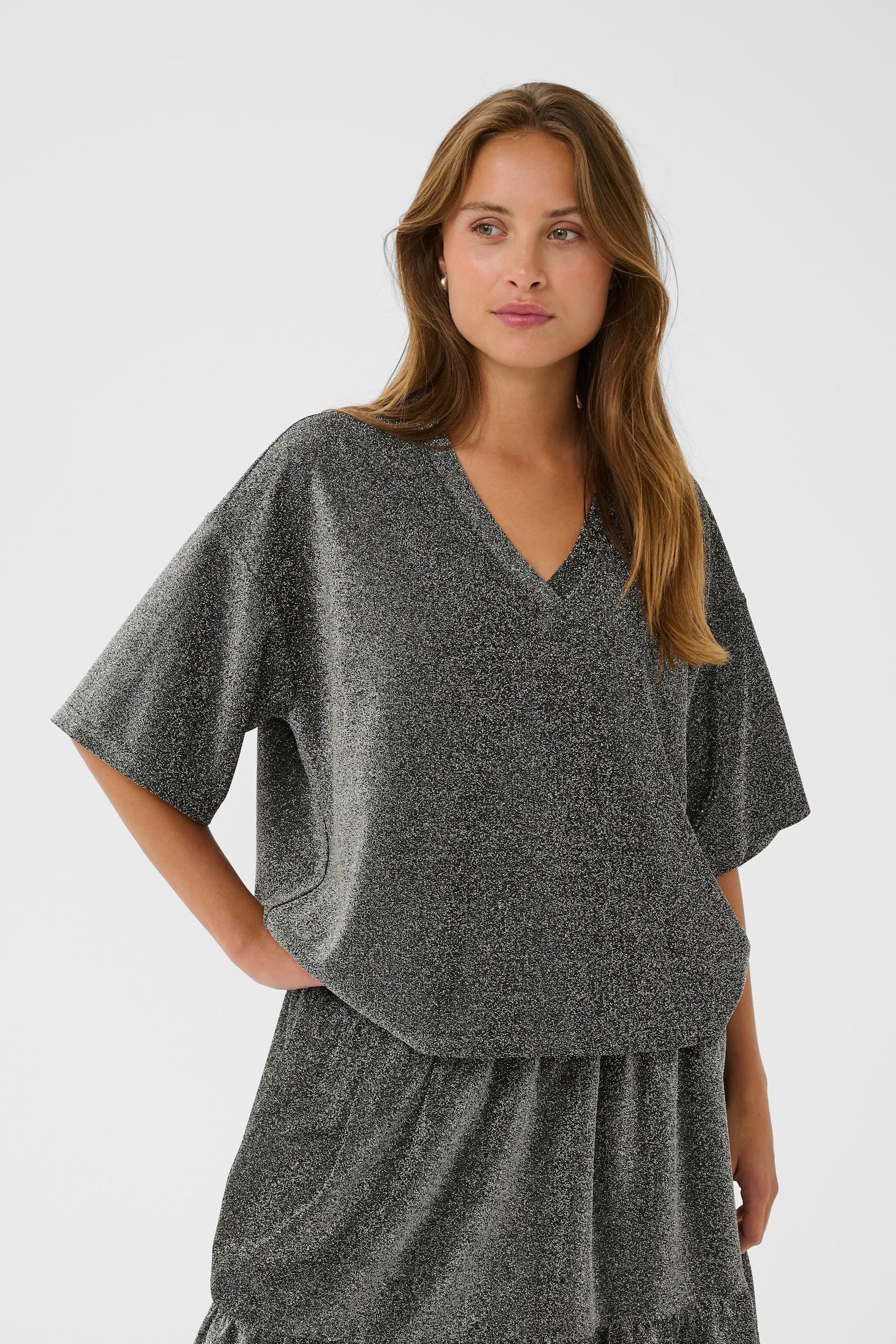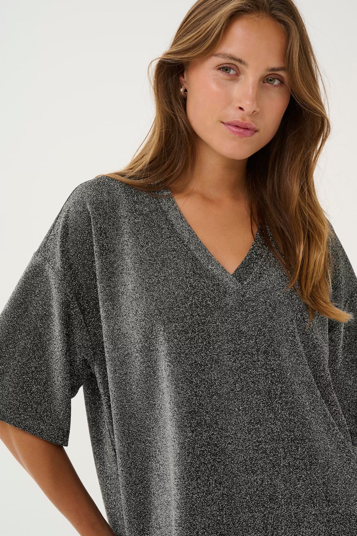 Fallegur og sparilegur bolur frá KAFFE. Einnig koma buxur í stíl. 95% polyester 5% teygja
