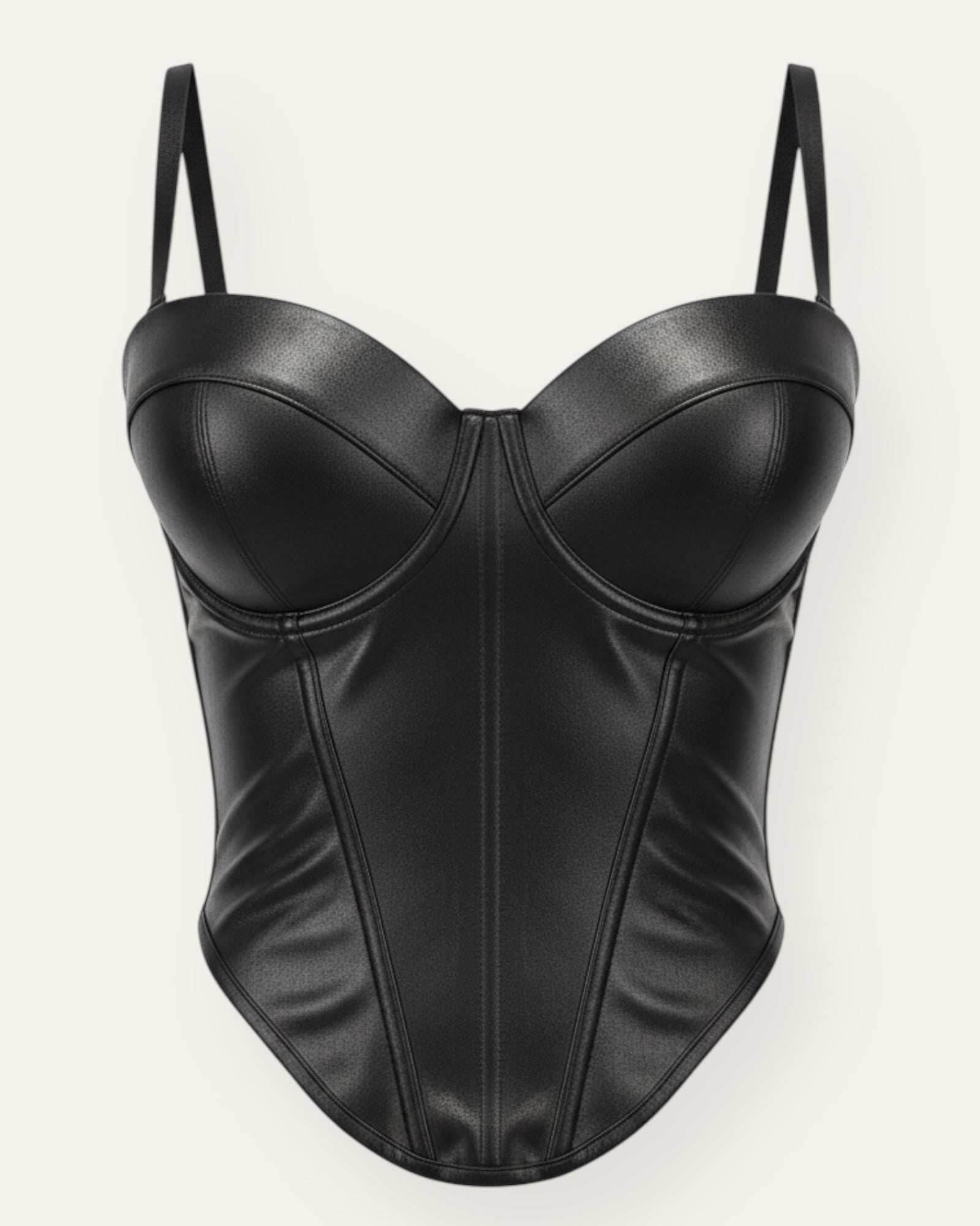 Faux Leather Corset Toppur Stílhreinn og töff corset toppur úr mjúku faux leather efni sem mótar líkamann fallega. Toppurinn er með styrktum bollum sem veita góðan stuðning og skapa fallega ... Sjá nánar
