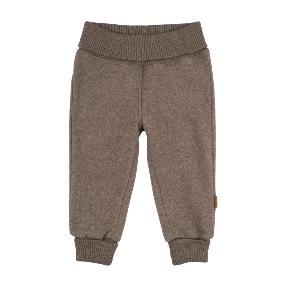 Brúnar flísbuxur frá Mikk-line sem anda vel og halda góðum hita. Buxurnar eru með stroffi í mitti og við skálmar. 85% bómull og 15% polyester.