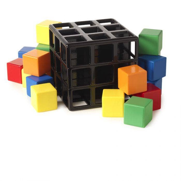 Óvenjulegur Rubik's þrautateningur þar sem teningum er raðað í búr.