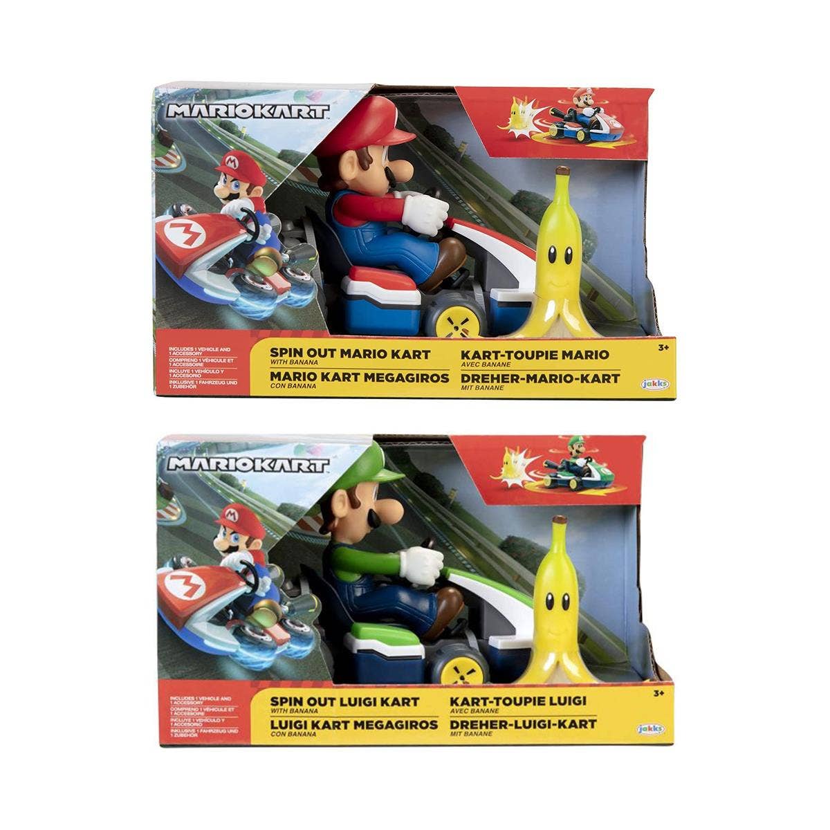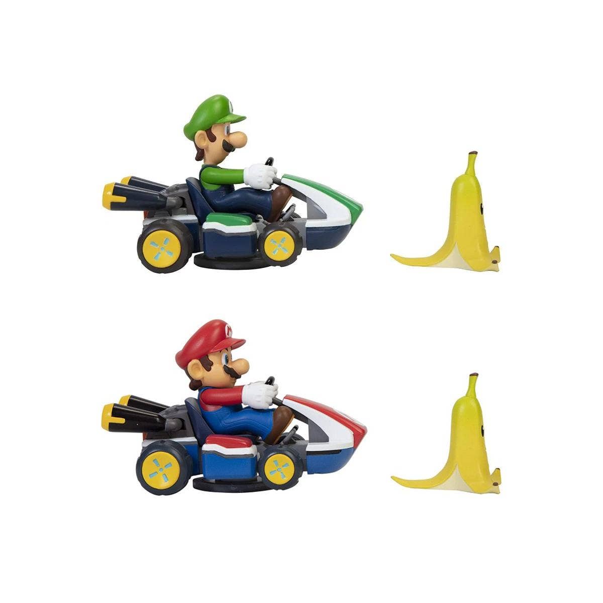 Skemmtileg fígúra í bíl ásamt banana úr Mario Kart tölvuleikjaseríunni.
