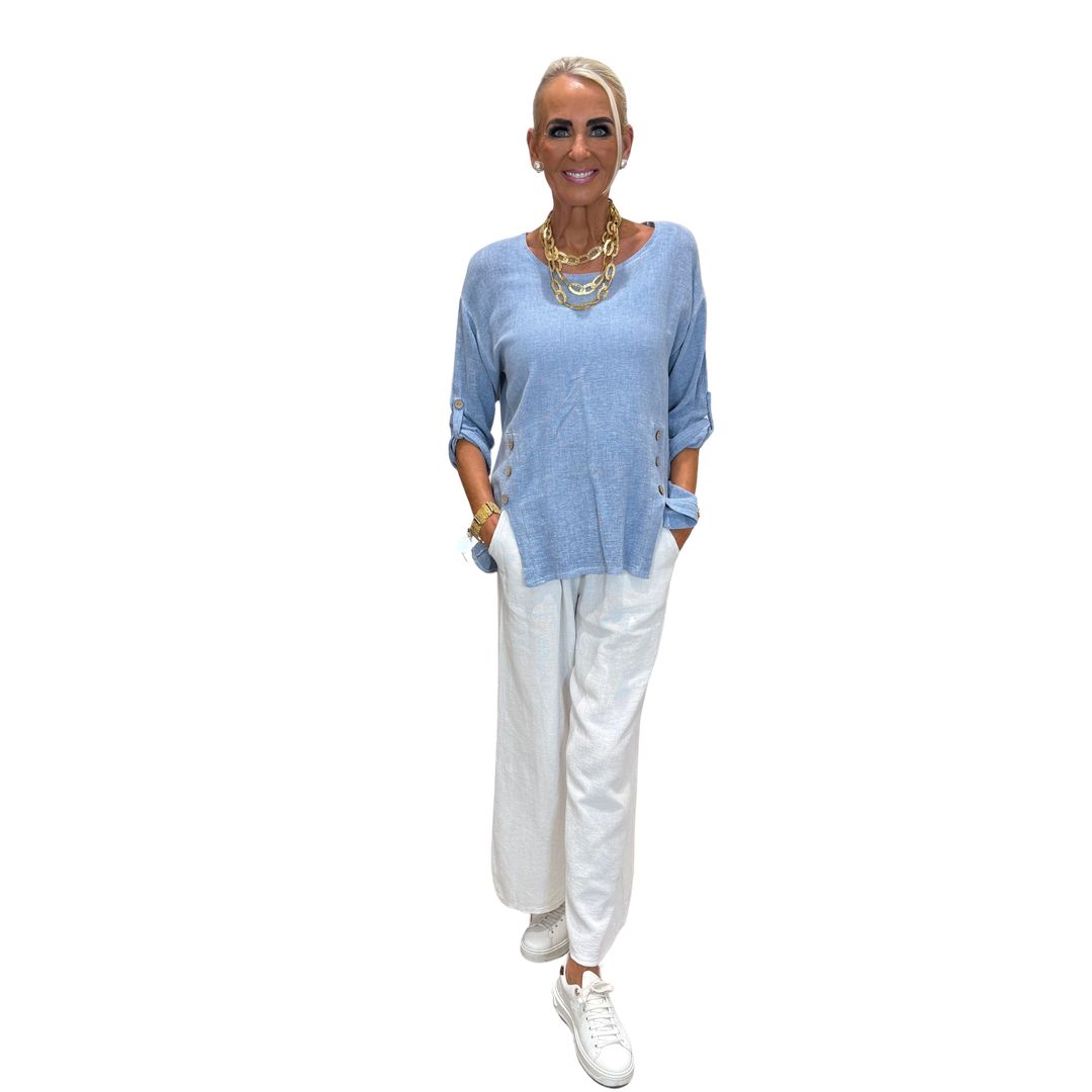 Ljósblá hörskyrta með tölum