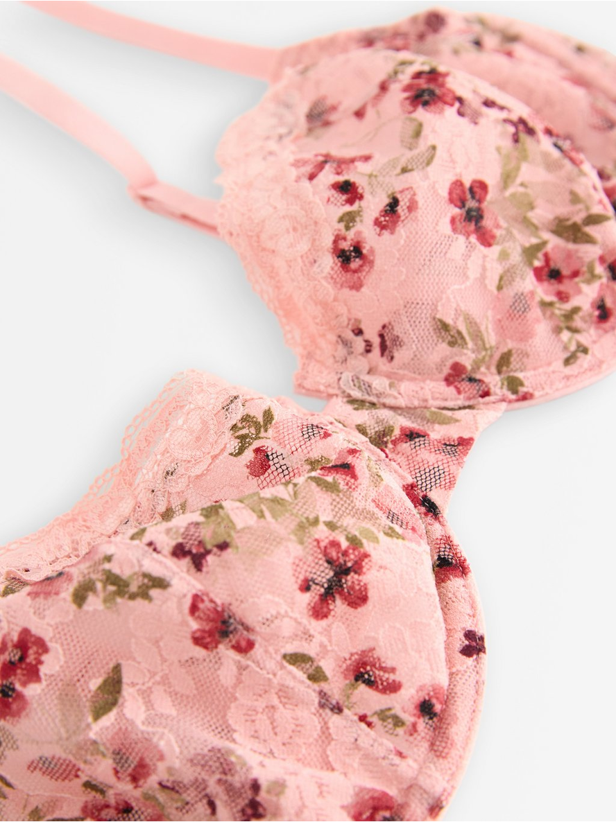 Unpadded wire bra in sheer lace with flowerprint. Slim, adjustable shoulder straps Underwire The hook and eye closure on bras varies in number of hooks depending on fit and size. See ... Sjá nánar
