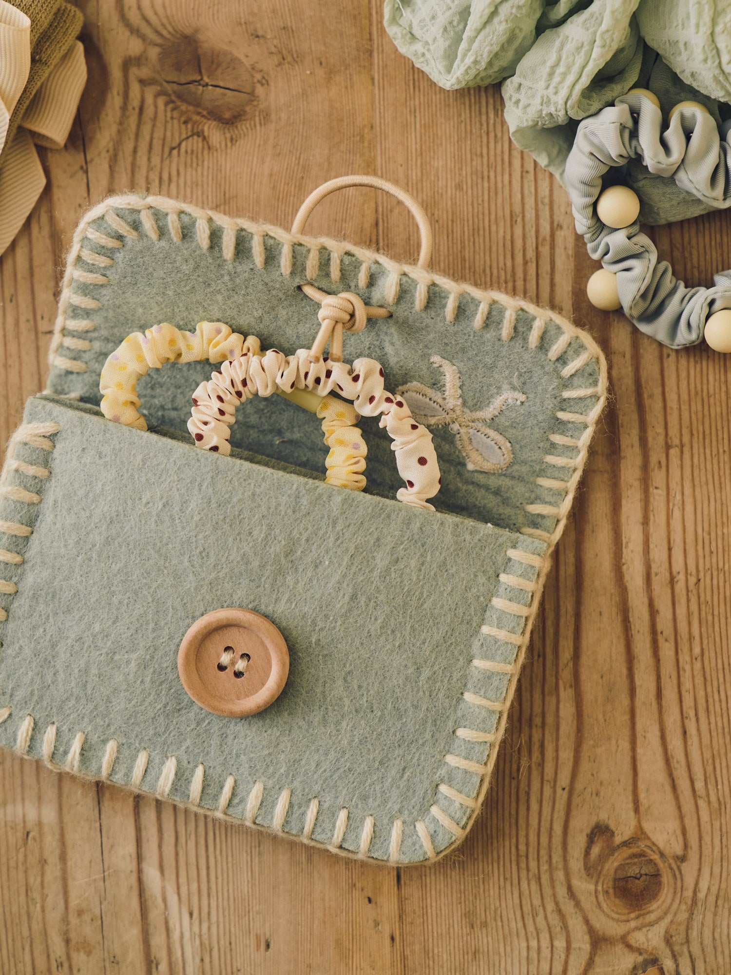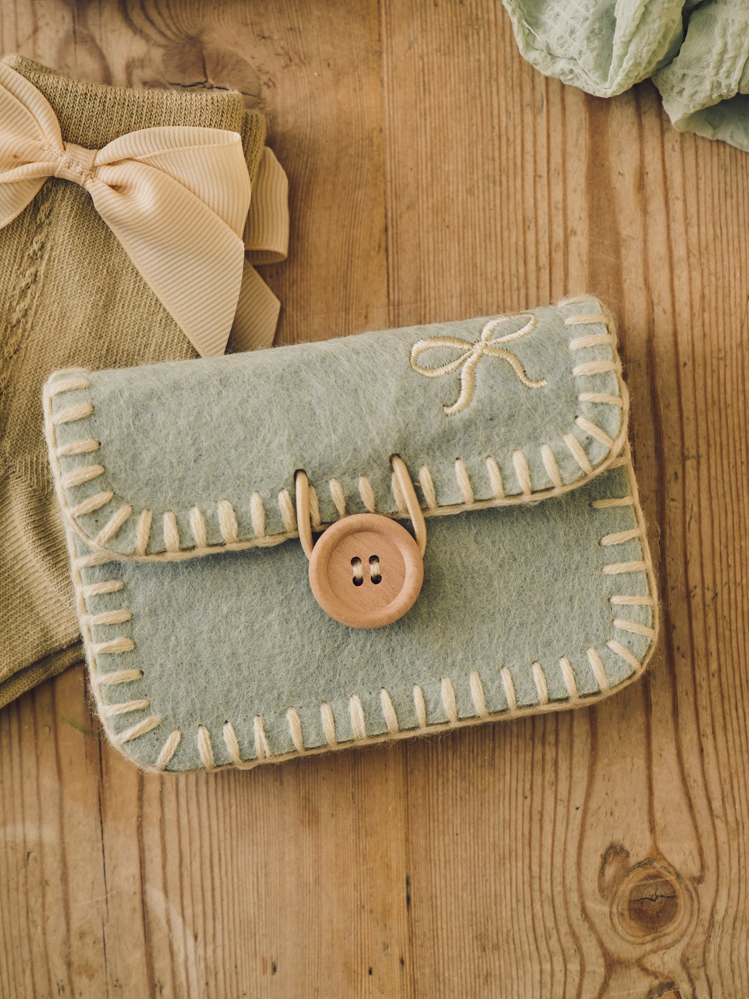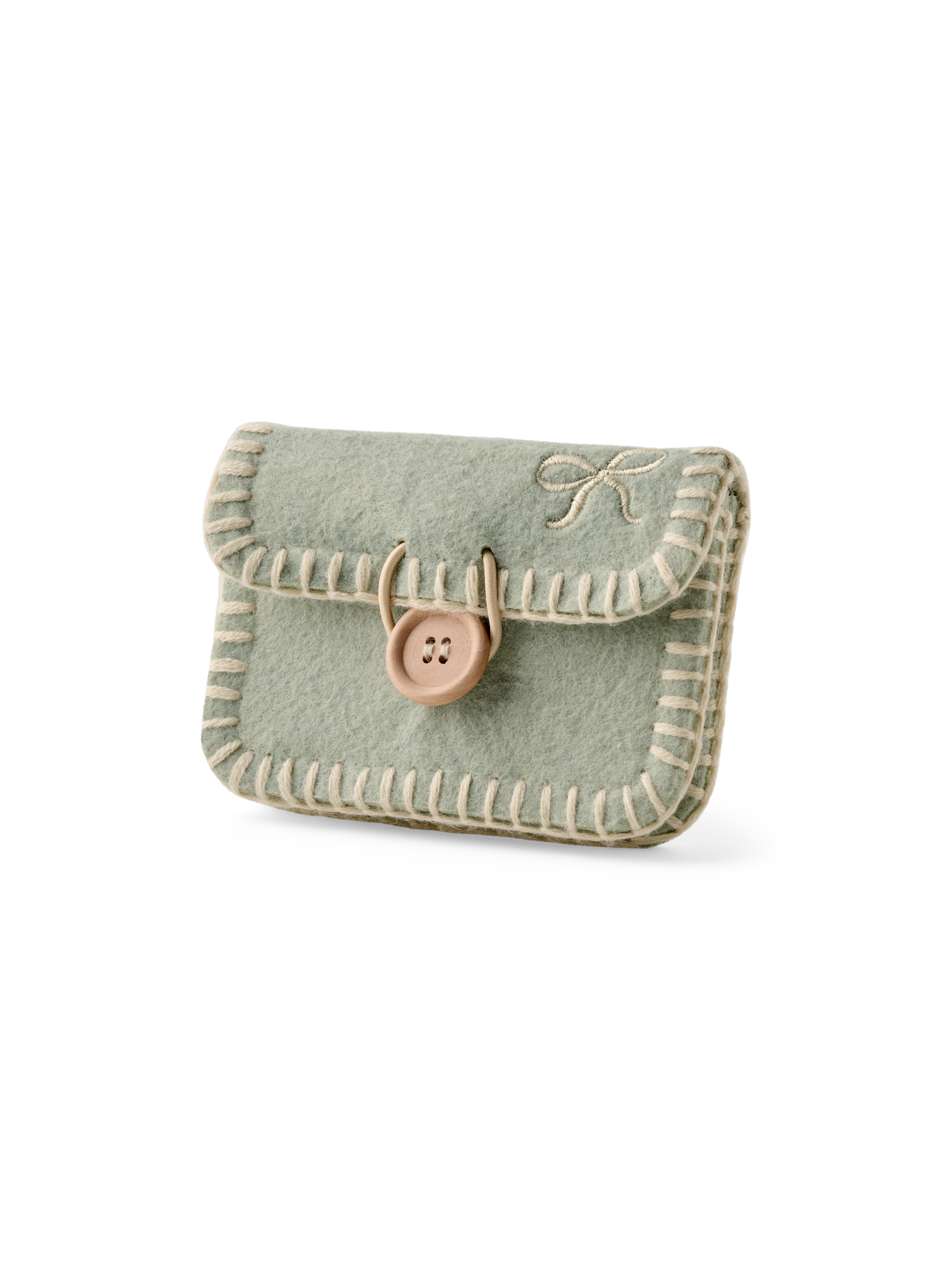 A decorative detail "This felt wallet is a charming companion for everyday outings," Anna notes, admiring its neat button closure. Clara adds, "It keeps essentials organised with grace, making ... Sjá nánar