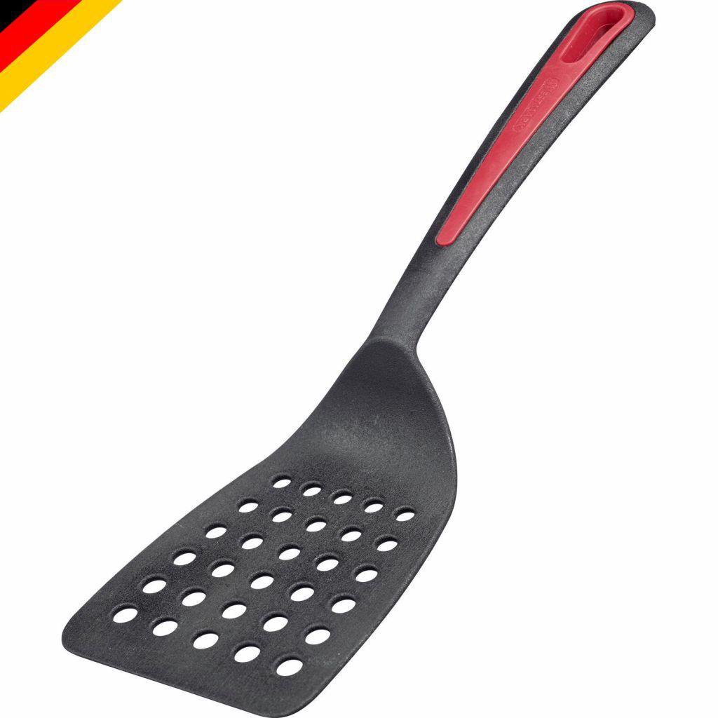 Spaði með stórum flötum spaða. Hentar vel á húðaðar pönnur og potta. Má fara í uppþvottavél. Framleitt í Þýskalandi.