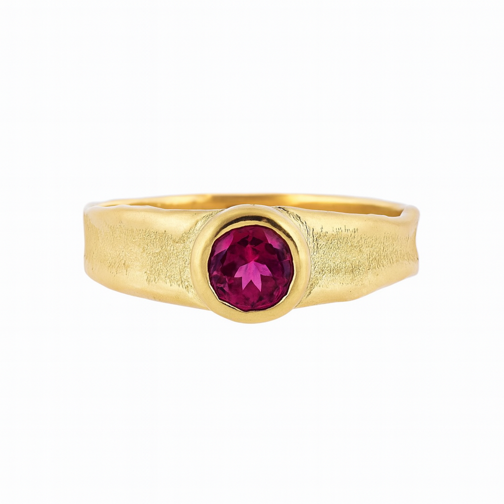 LAUPUR 14k eldmótaður gullhringur með rúbín
