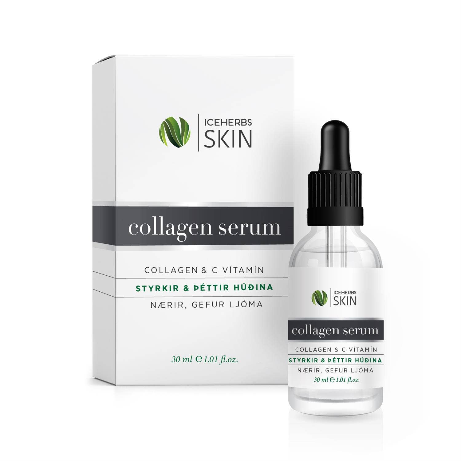 Collagen Serum með c-vítamíni. Styrkir og þéttir húðina, og gerir hana glóandi.