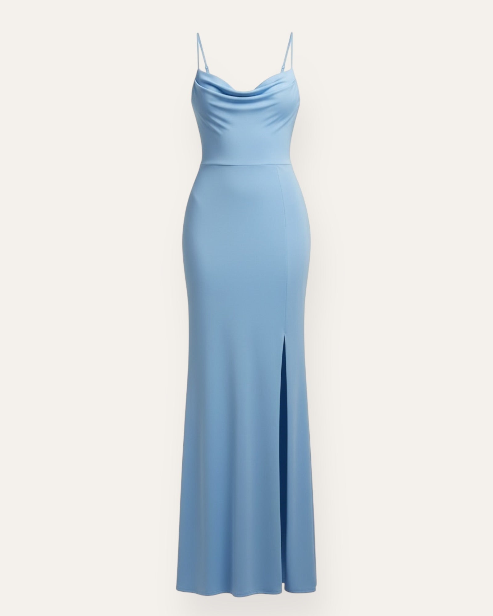 Elegant Maxi Kjól Glæsilegur maxi kjóll með fallegu hálsmáli og þunnum stillanlegum hlýrum. Kjóllinn er úr mjúku og teygjanlegu efni sem fellur fallega að líkamanum og er með klauf að framan ... Sjá nánar