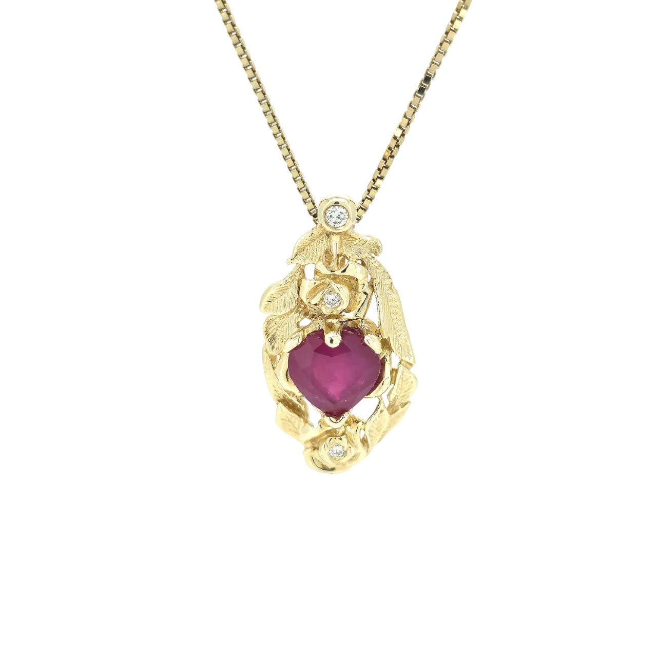 Efni mens: 14kt gull Steinar: 2 demantar - 0,06ct - Top Wesselton VS | 1 rúbín - 2,76ct - hjartalaga Keðja: 45cm - 14kt gull