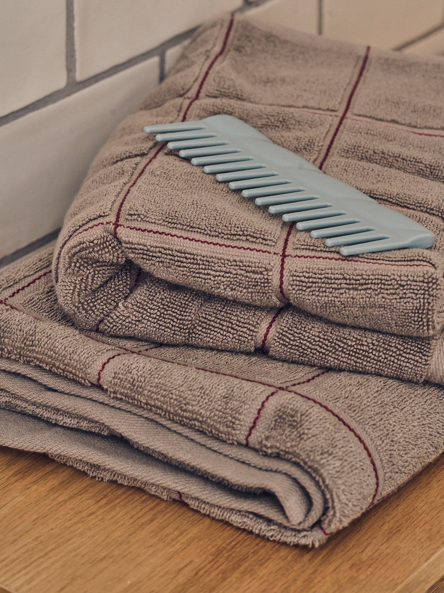 Everyday essentials "Anna folds the checkered towel neatly, admiring its softness. 'A touch of elegance for our daily rituals,' Anna notes. Clara agrees, 'It brings a gentle charm to our home ... Sjá nánar