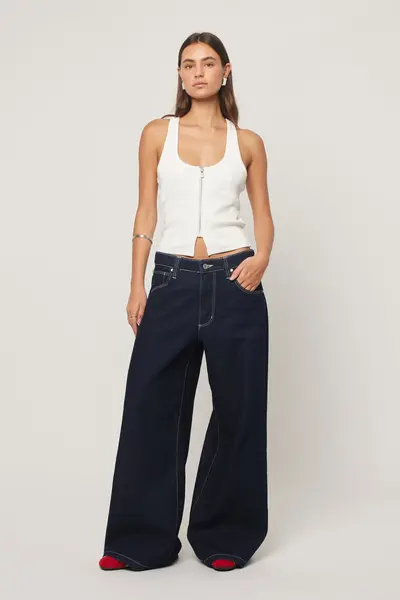 Flottar low rise gallabuxur frá Abrand Jeans sem eru mjög víðar.