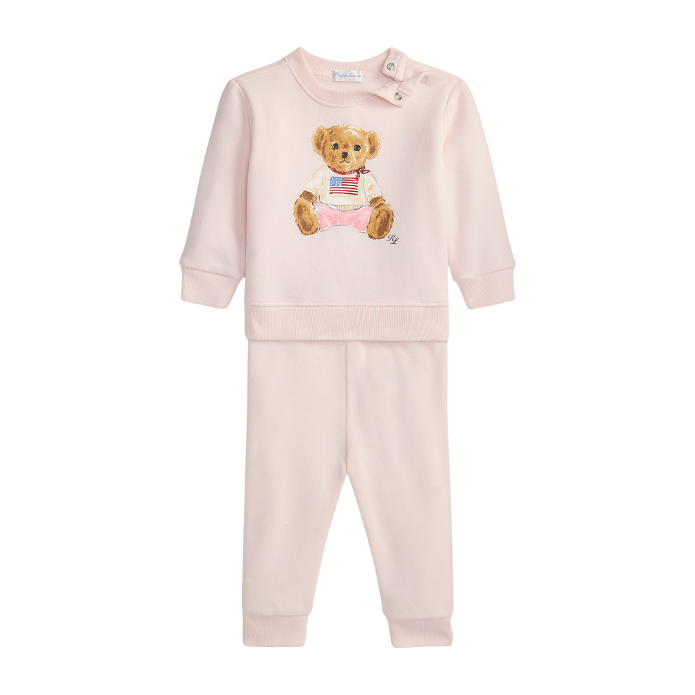 Ljós bleikt jogging sett frá Polo Ralph Lauren. 60% bómull og 40% polyester.