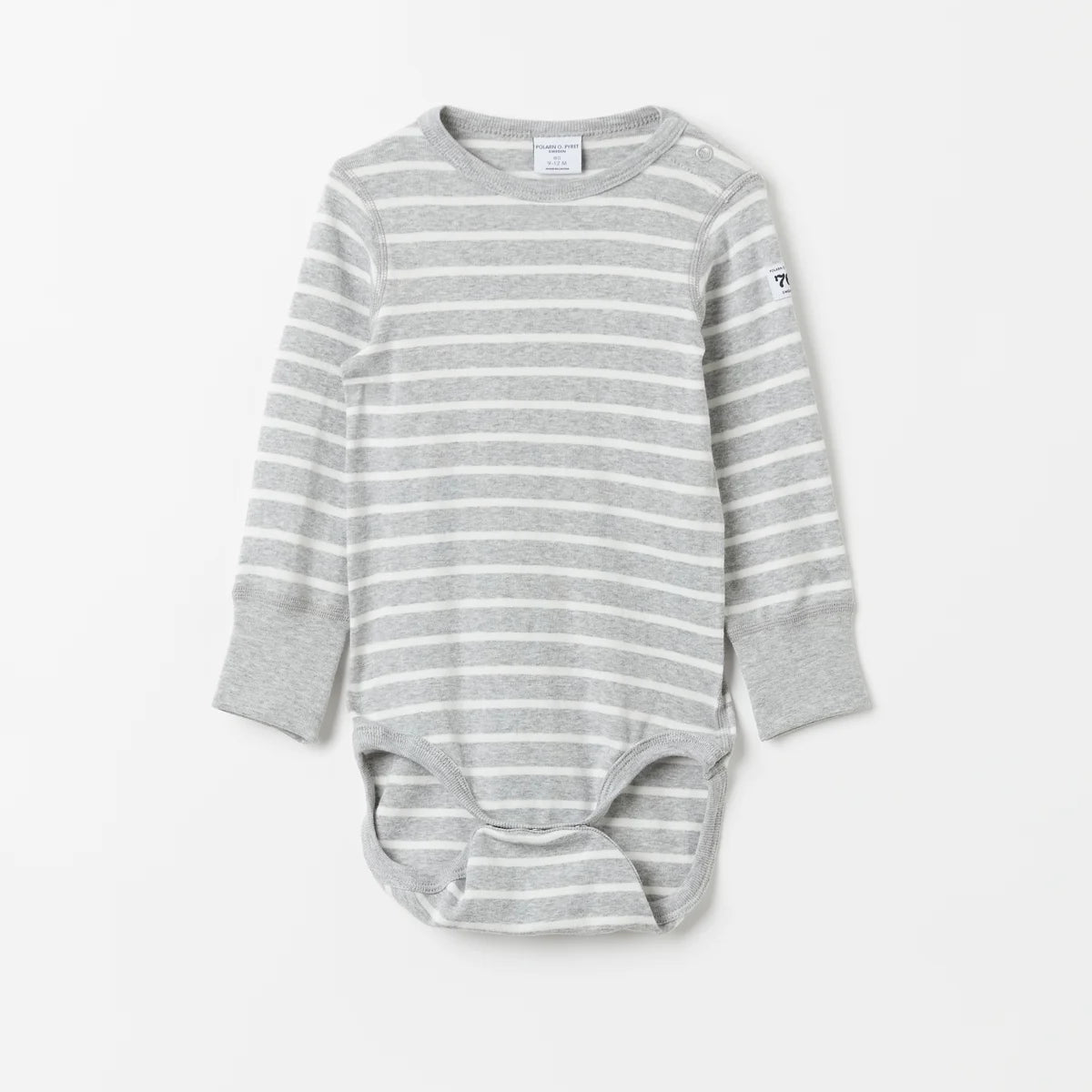 Hluti af PO.P Originals línunni. Mjúk samfella úr 100% lífrænni GOTS vottaðri bómull. Smellur á öxl auðvelda að klæða í og úr. Til er sett af buxum, húfu og sokkum í sama lit og munstri.  ... Sjá nánar