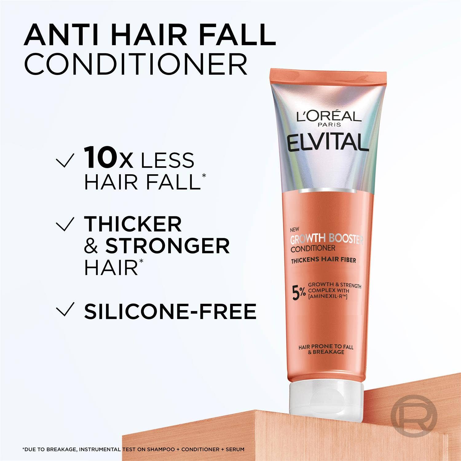 Elvital Growth Booster hárnæring frá L’Oréal Paris styrkir hárið, dregur allt að tífalt úr brotnum hárum og lengir lífsferil þess
