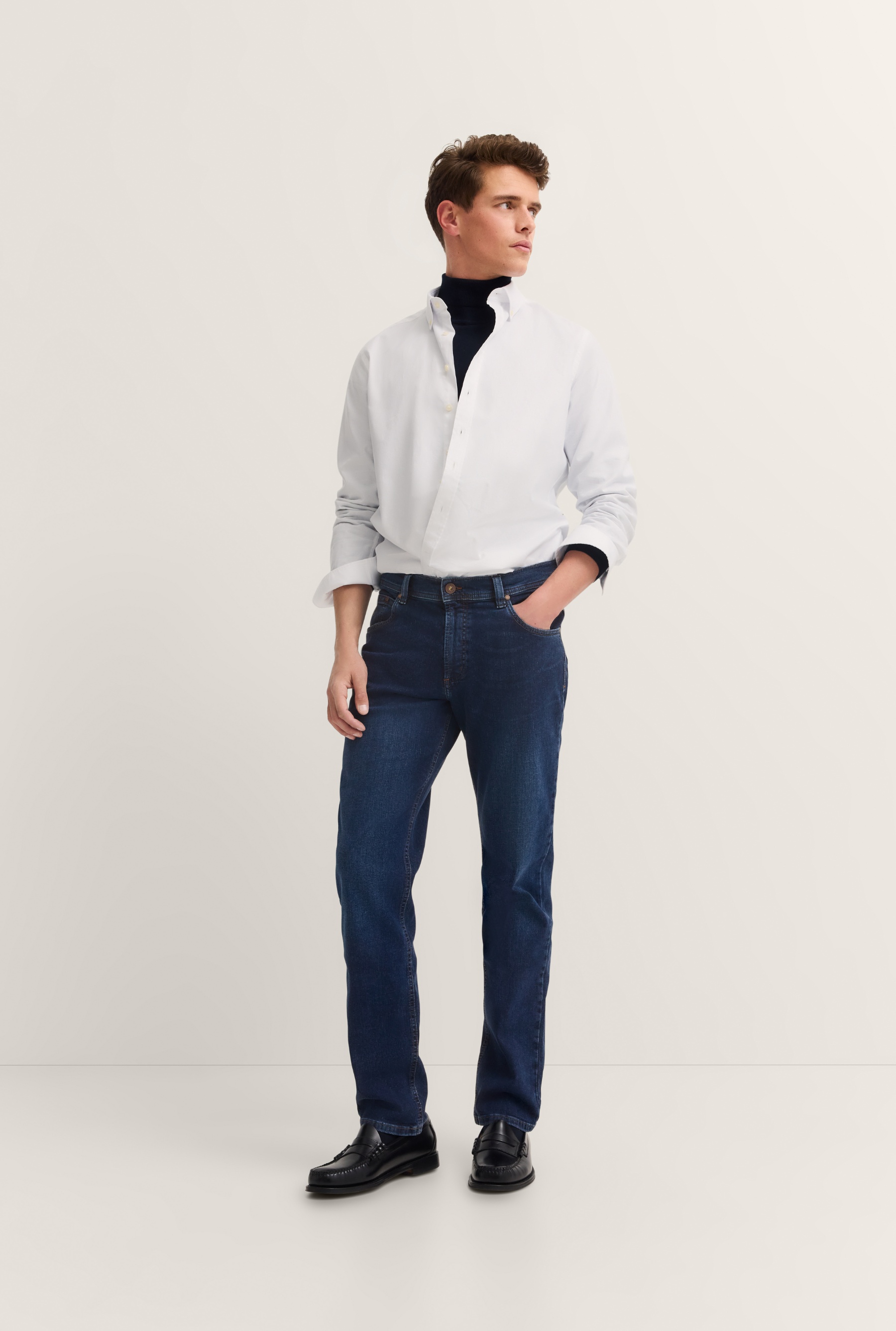 Regular fit, premium denim cashmere touch, high class soft used washed