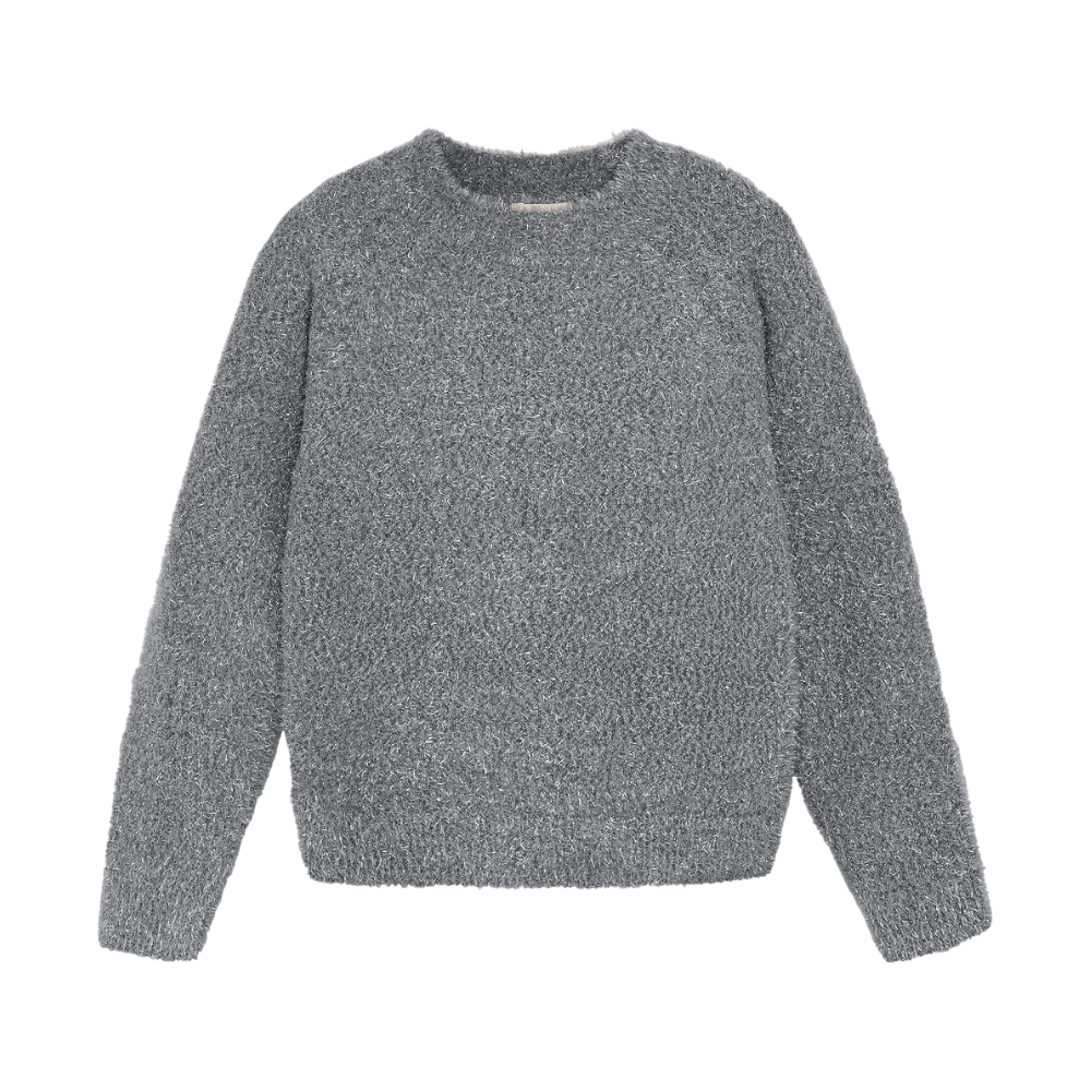 Silfruð glimmer peysa frá Creamie. 85% nylon og 15% metallic fiber.