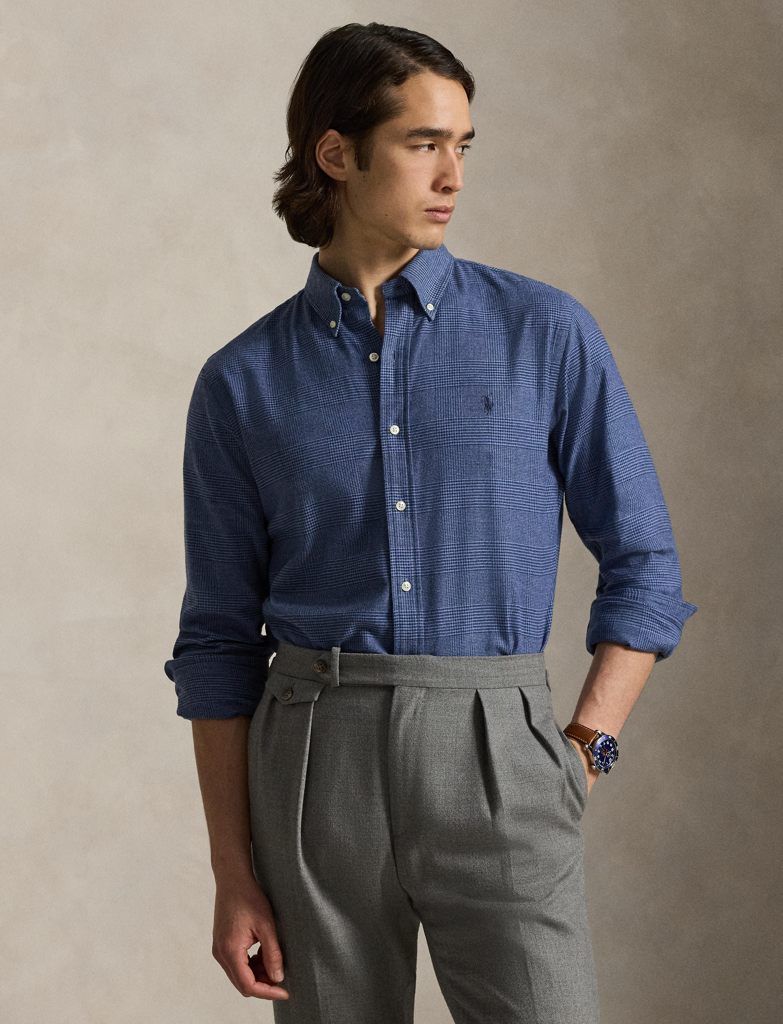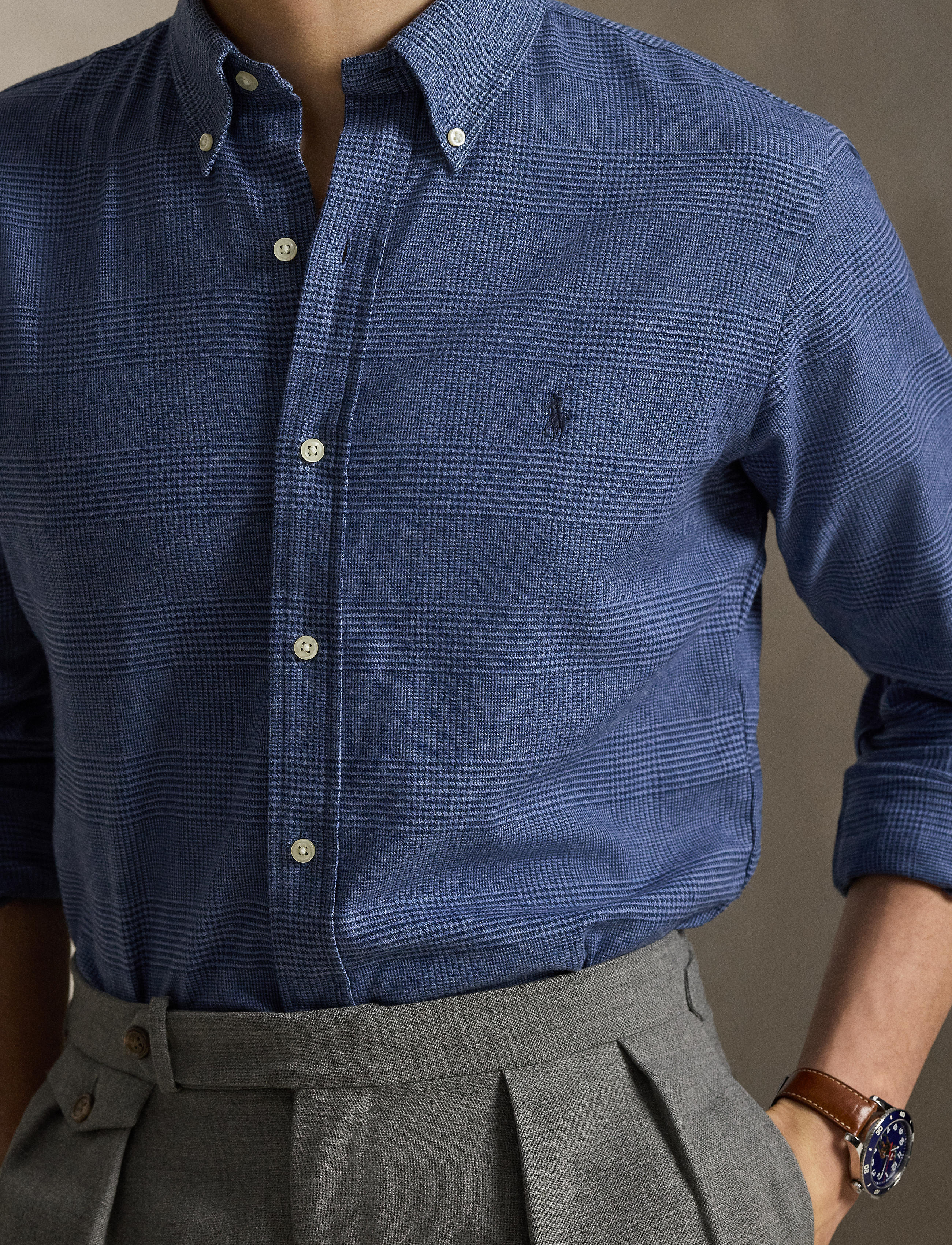 This Glen plaid shirt is crafted from an innovative brushed twill fabric that is both wrinkle-resistant and moisture-wicking to help keep you cool throughout the day. Custom Fit: a trim ... Sjá nánar