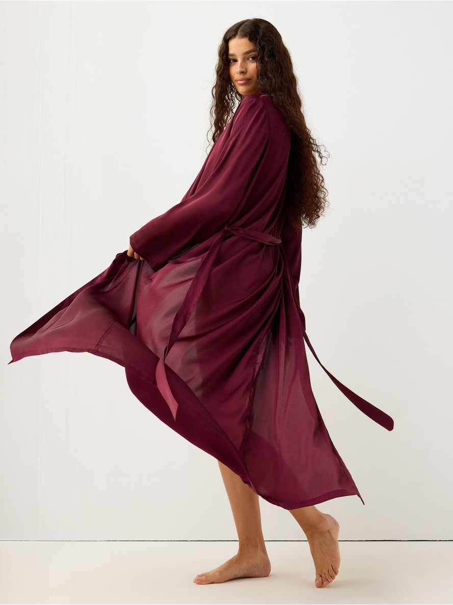 Sleek long robe in satin with a tie band at the waist. Length: 144 cm in size M/L 100% pólýester