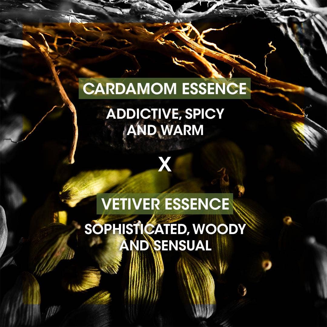 Tær karlmannlegur ferskleiki sameinaður fágun og kæruleysi skapar ferskan en djúpan og dularfullan ilm með keim af kardimommum, sedrusviði og kúmíni.