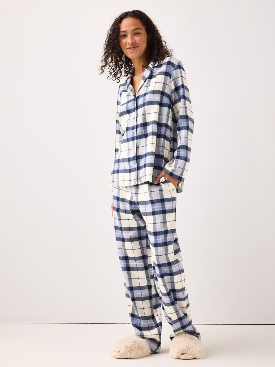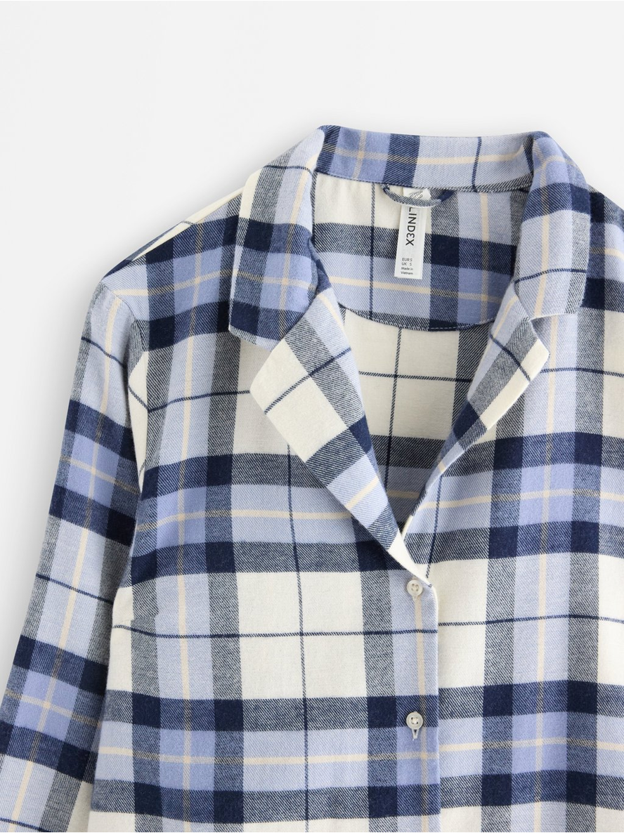 Classic night shirt in flannel with long sleeves, collar and buttons down the front. Contains 75% Cotton in Conversion Contains 25% recycled cotton Length: 71 cm in size M 100% bómull