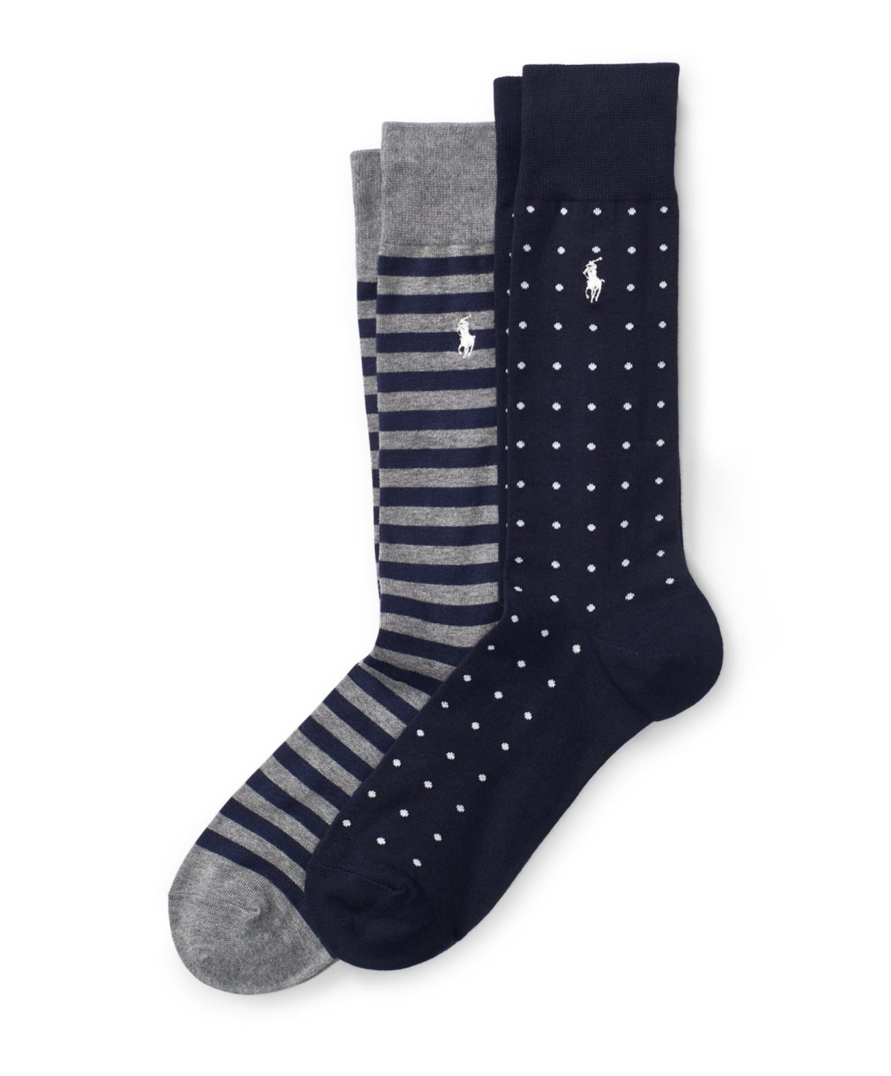 With a dotted pair and a striped pair, this two-pack of stretch cotton socks will add a subtle pop of pattern to your loafers or oxfords. Signature embroidered pony at the outer side of each ... Sjá nánar