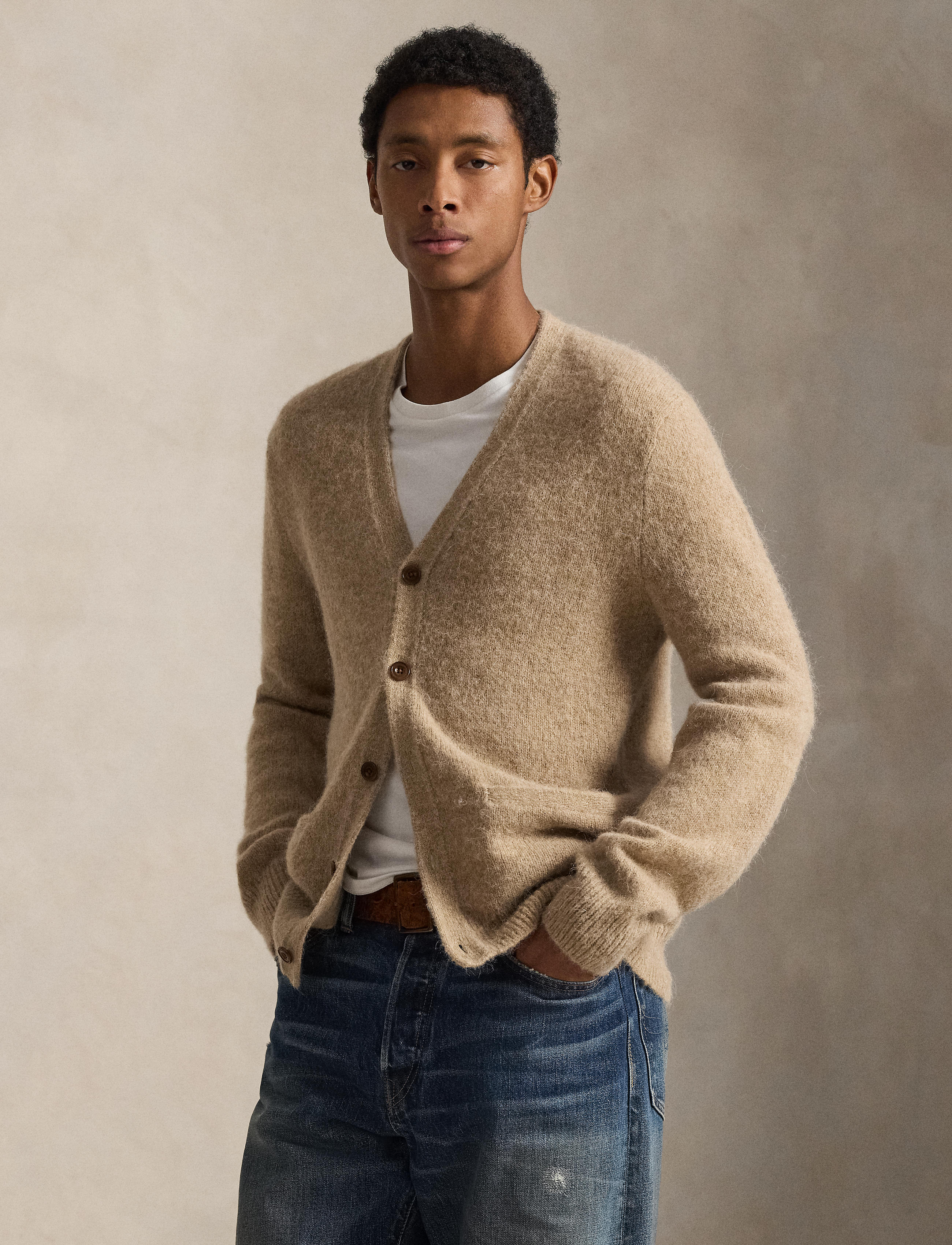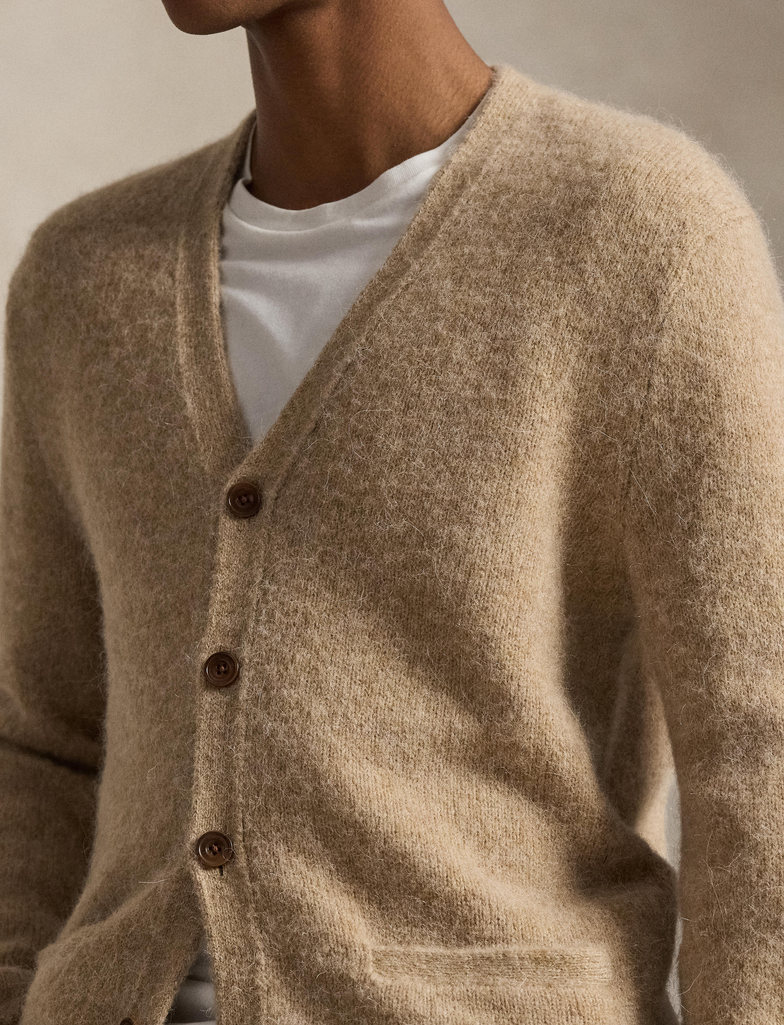 This V-neck cardigan is crafted with thick-gauge wool-blend yarn and detailed with corozo buttons. Suede elbow patches add a heritage-inspired finish. Regular Fit: wider at the chest while ... Sjá nánar