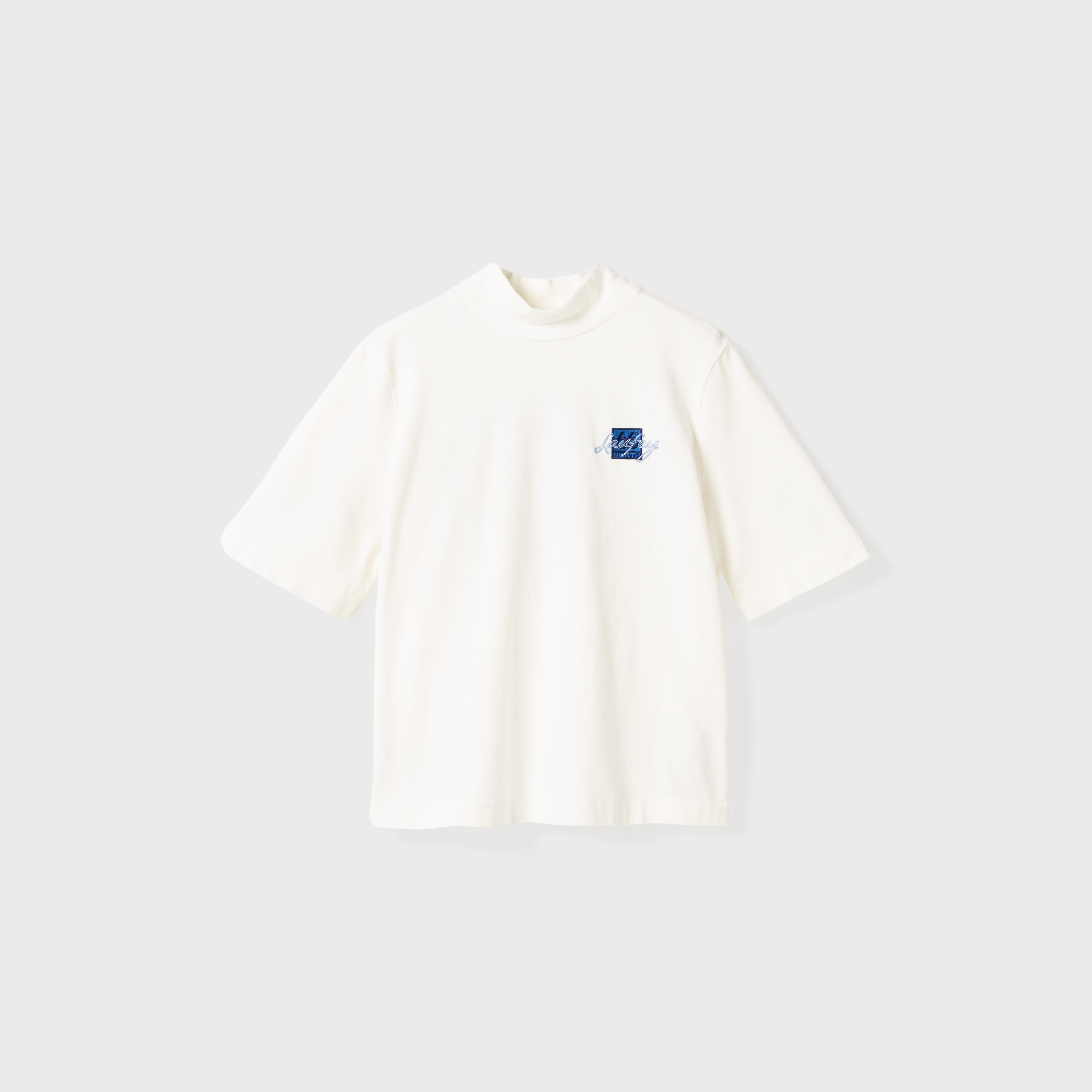 A fitted mock-neck T-shirt with the collaboration logo on the chest and a clock-inspired graphic with Laufey’s handwritten “L” on the back.