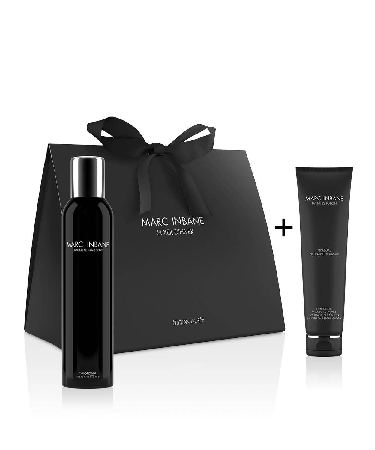 Soleil D'hiver er jólaboxið 2025 frá Marc Inbane, þú kaupir Natural Tanning Spray og færð Gradual Tanning Lotion frítt með.
