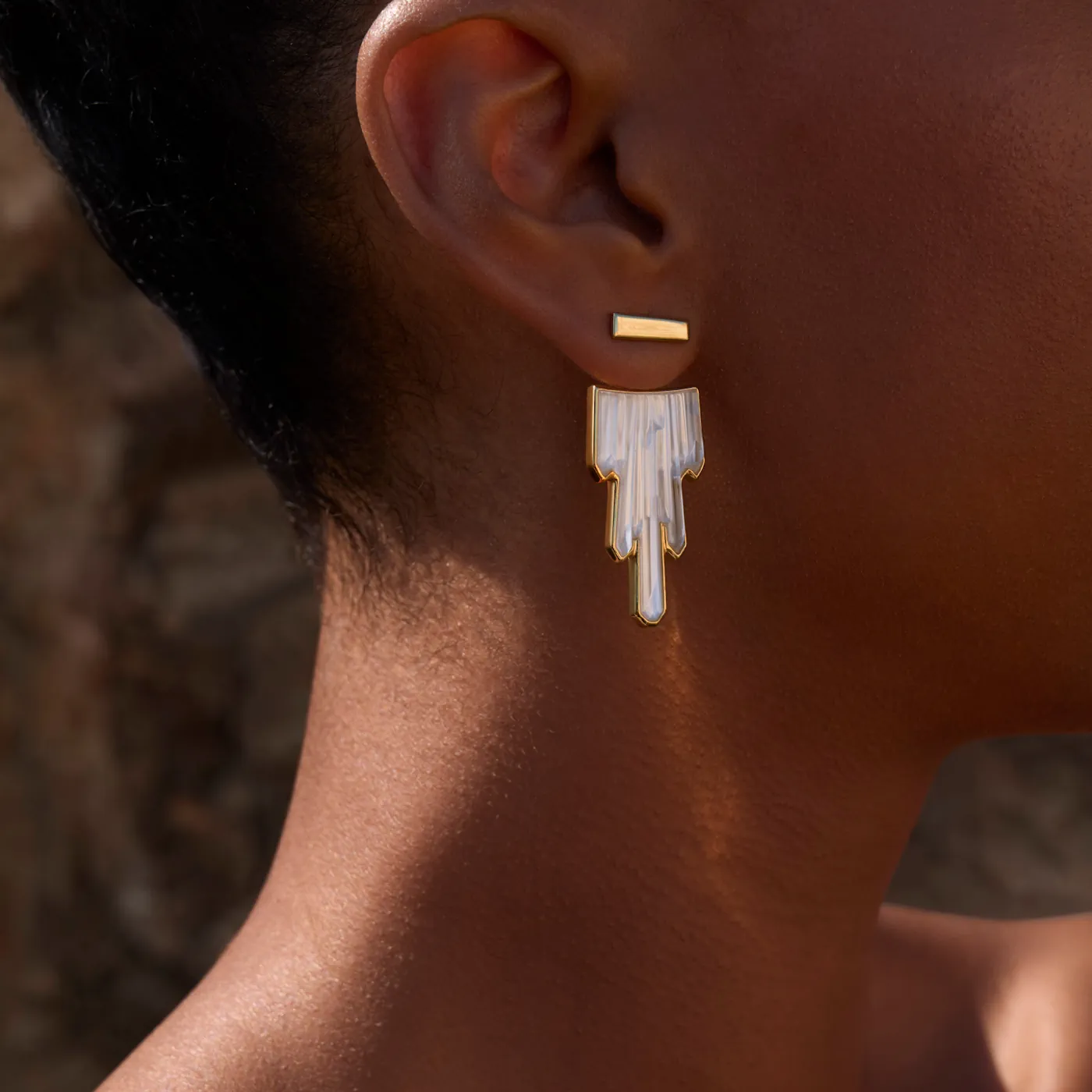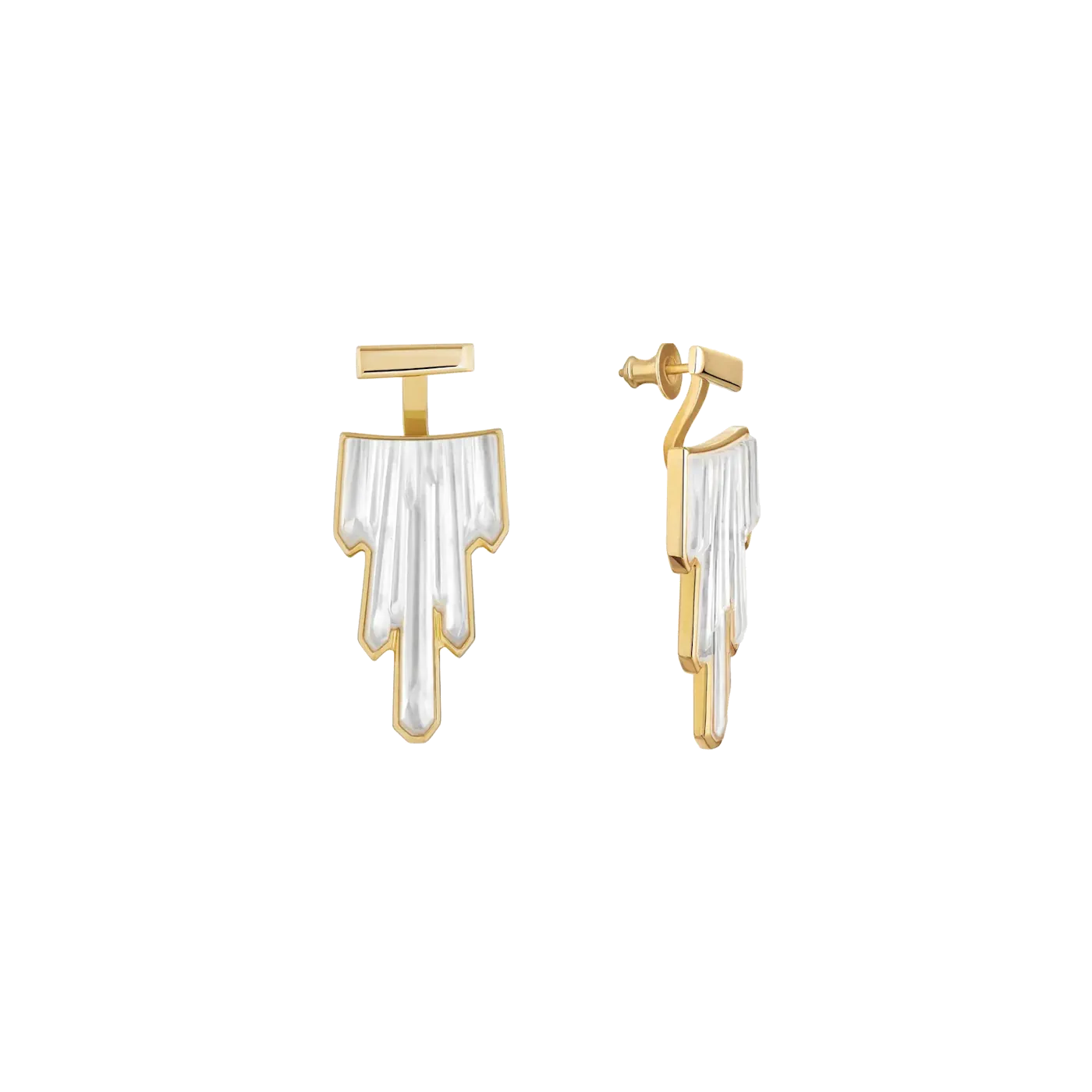 Efni eyrnalokka: 18kt gullhúðað látún og franskur Lalique kristall Stærð lokka: 4cm x 1.6cm