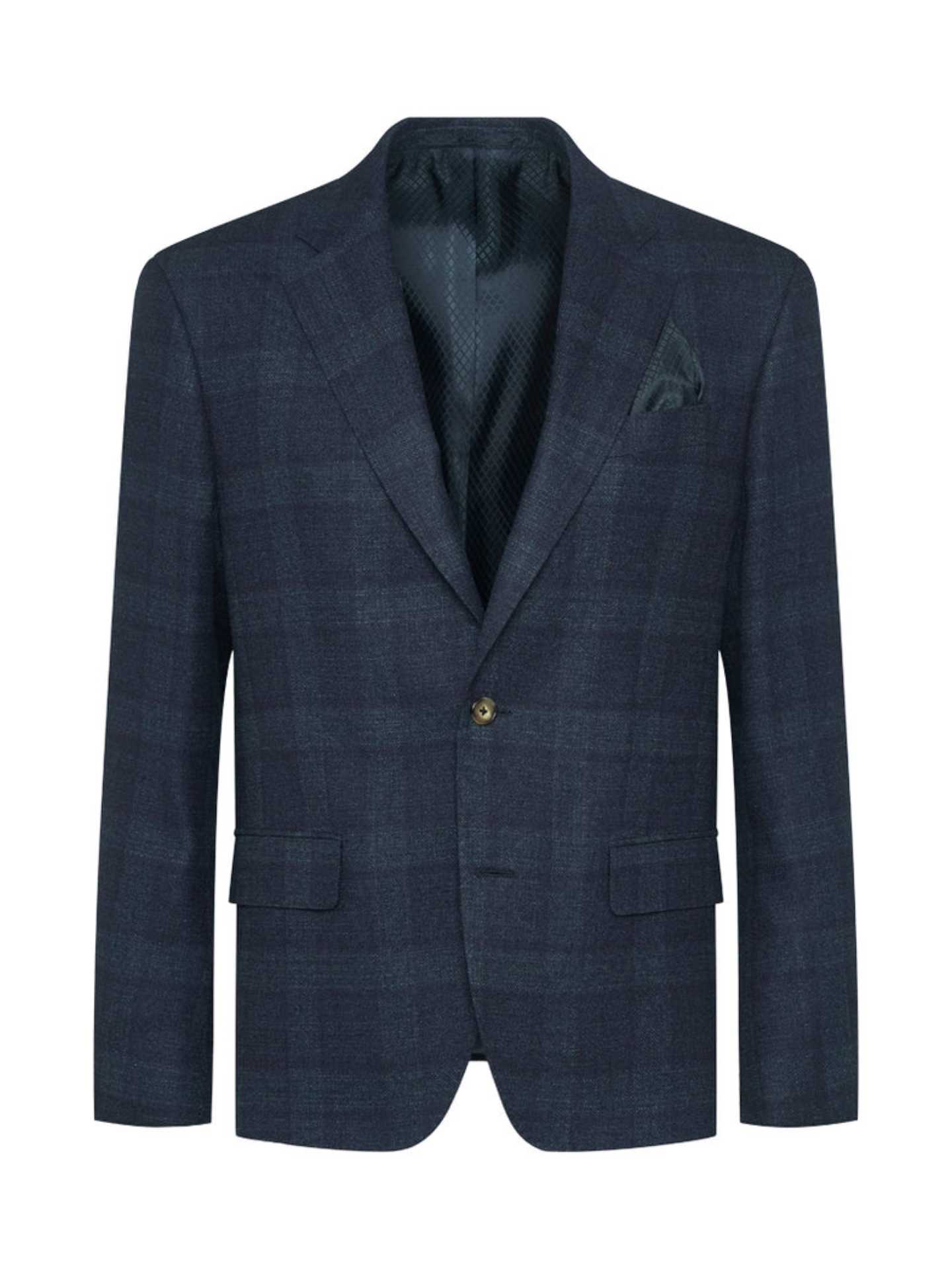 Classic Lapel Light Constructed Shoulders AMF Stitch Chest/Flap Pockets Two Vents On Back Fully Lined Fine Italian fabric 73% Virgin Wool, 24% Cotten, 2% Cashmere, 1% Elastane