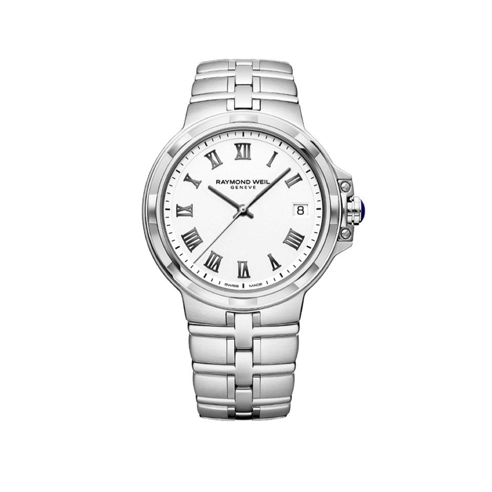 Parsifal 5580-ST-00300   Gangverk: Rafhlaða/Quartz Swiss Stærð: 41mm Úrkassi:Stál Keðja/ól:Stál Skífa:Hvít Gler:Safír Vatnsvörn:50m Dagatal:Já Eiginleikar:  Ábyrgð:Tveggja ára