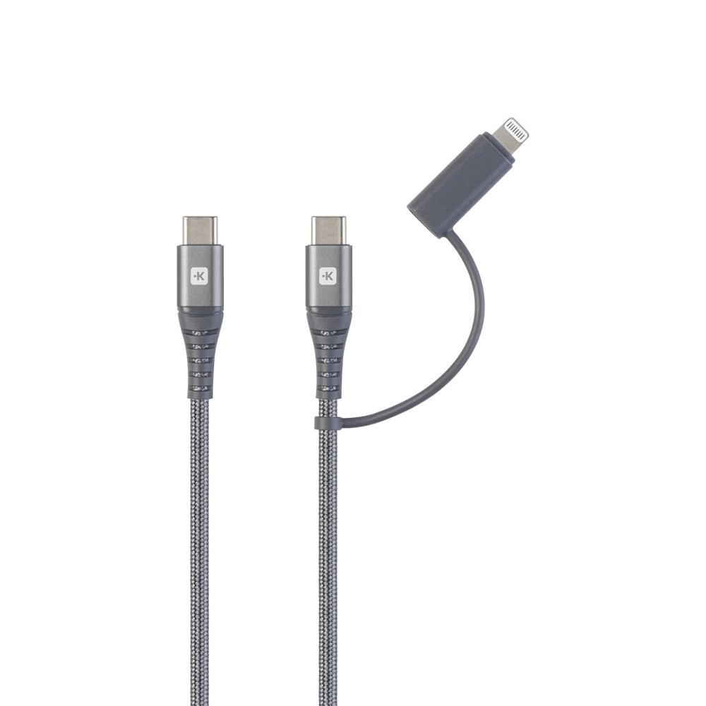 USB-C í USB-C hleðslusnúra með auka lightning tengi