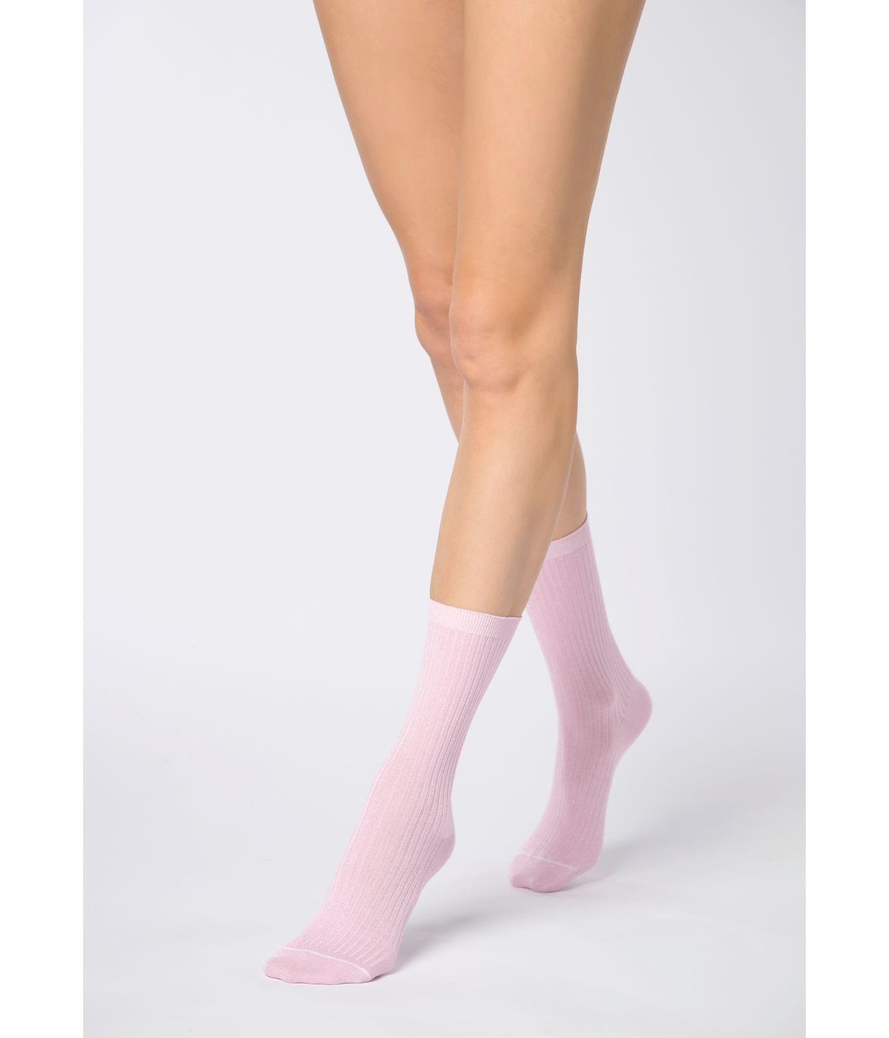 Rifflaðir bómullarsokkar með silfurþráðum. Stroffið er mjúkt og tásaumurinn er handgerður, flatur og ósýnilegur.