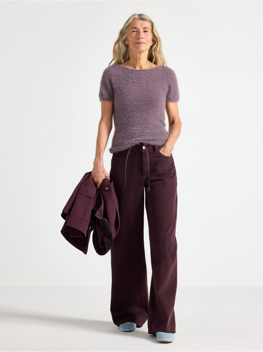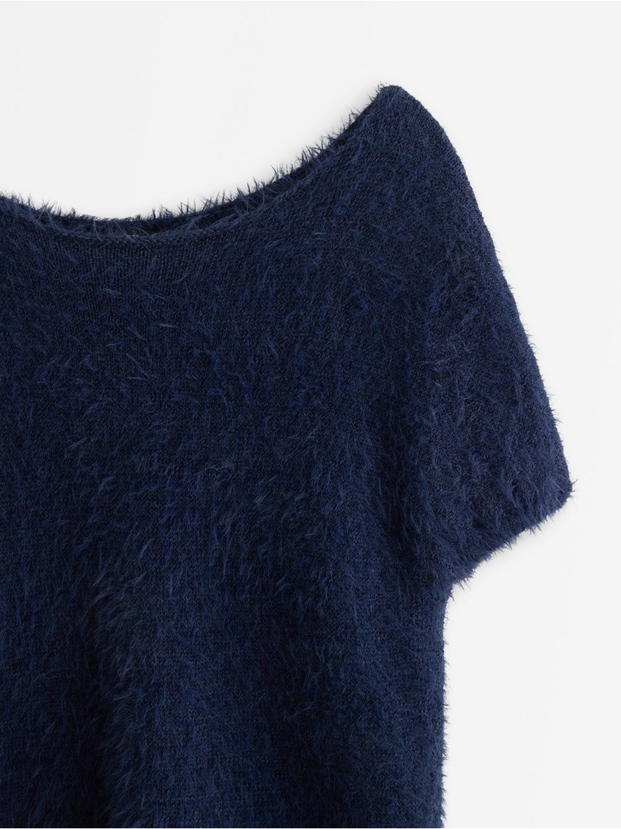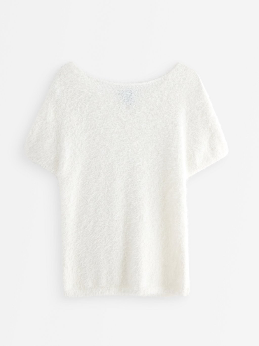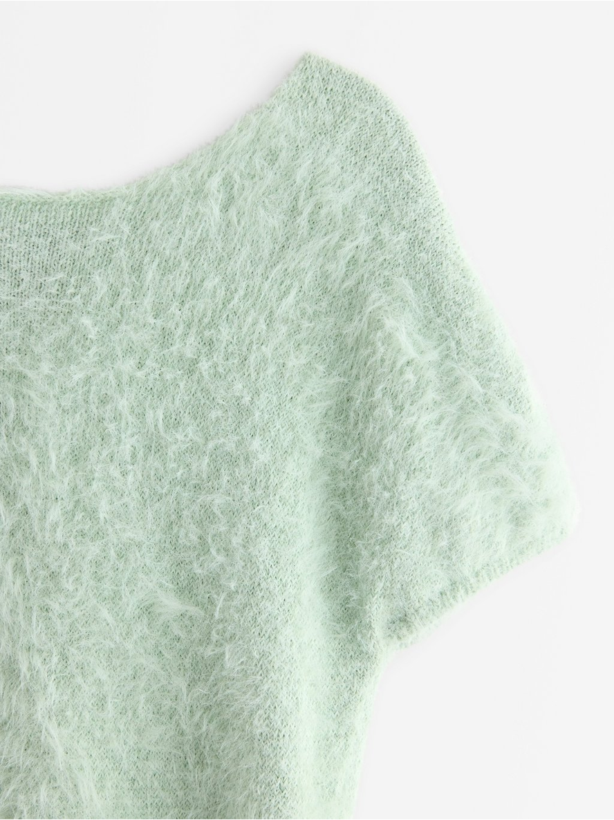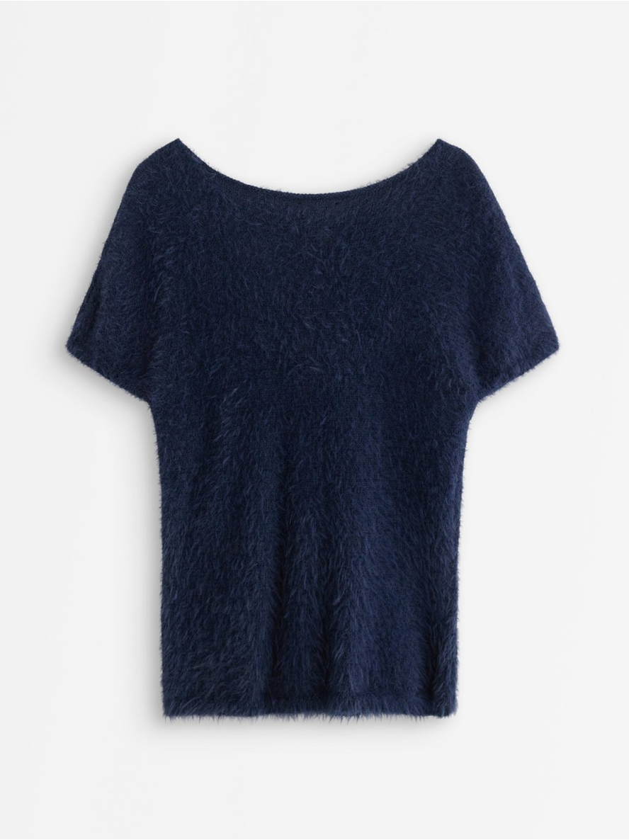 Knitted top in soft feather yarn with fitted waist and short sleeves. Short sleeves Length 54 cm in size M 100% pólýamíð