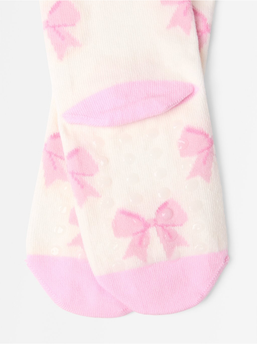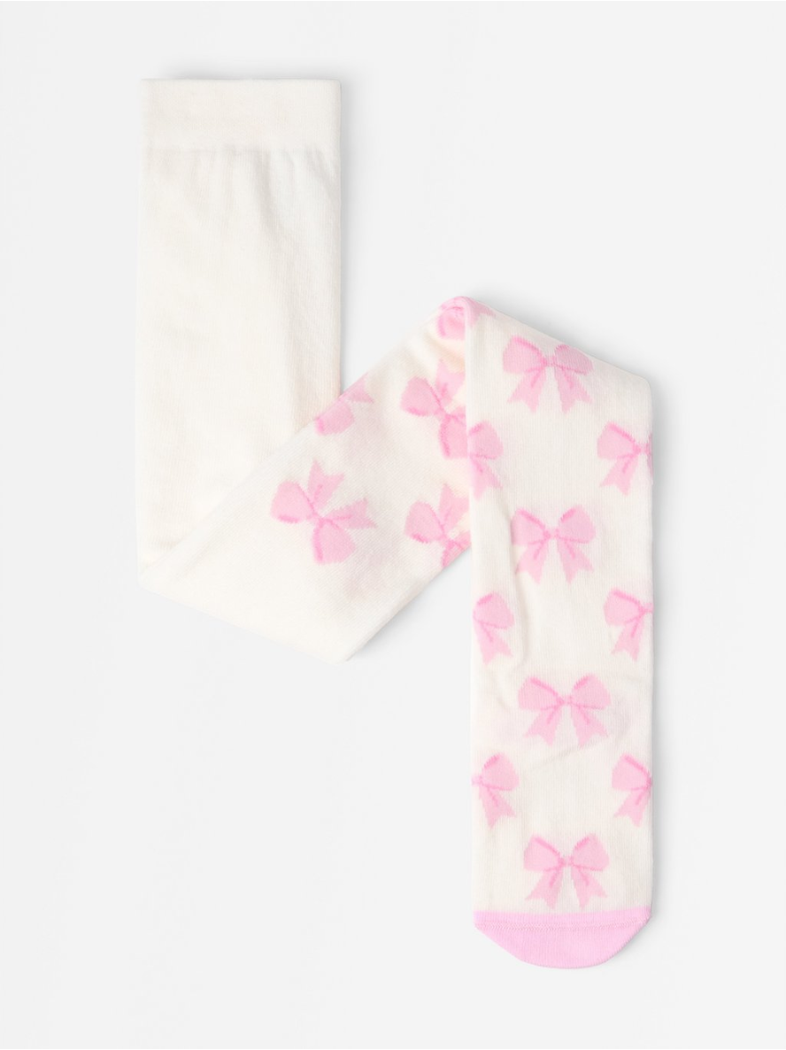 Fine-knit tights in cotton blend with pattern. Anti-slip on size 92-98/104 Contains 46% organic cotton Contains 22% recycled polyester 57% bómull 40% pólýamíð 3% elastan
