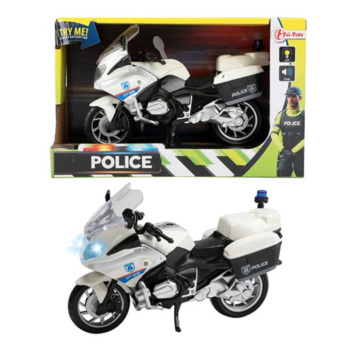 Flott lögreglu mótorhjól með ljósi og hljóðum.