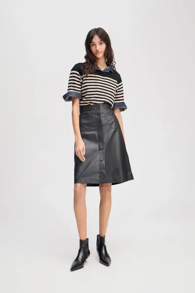 Fallegur prjónaður stuttermabolur frá Munthe. Módelið er 175 cm og í stærð 36.